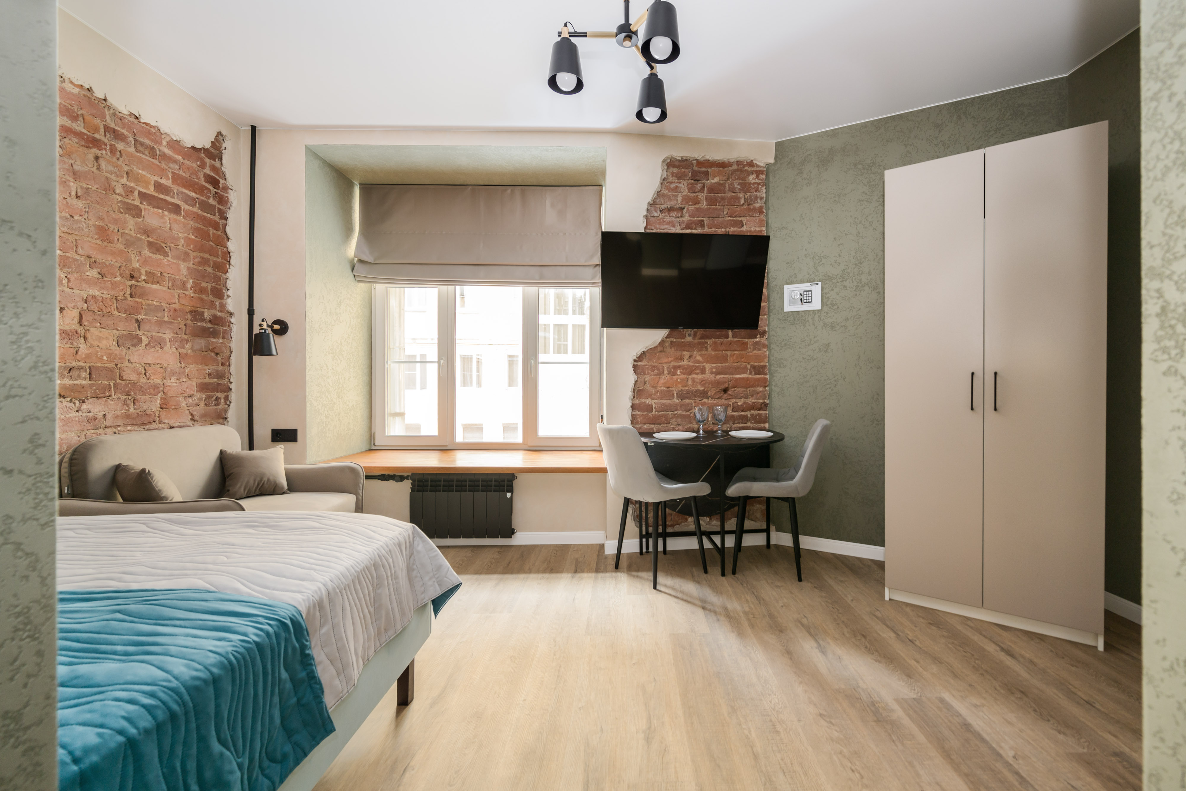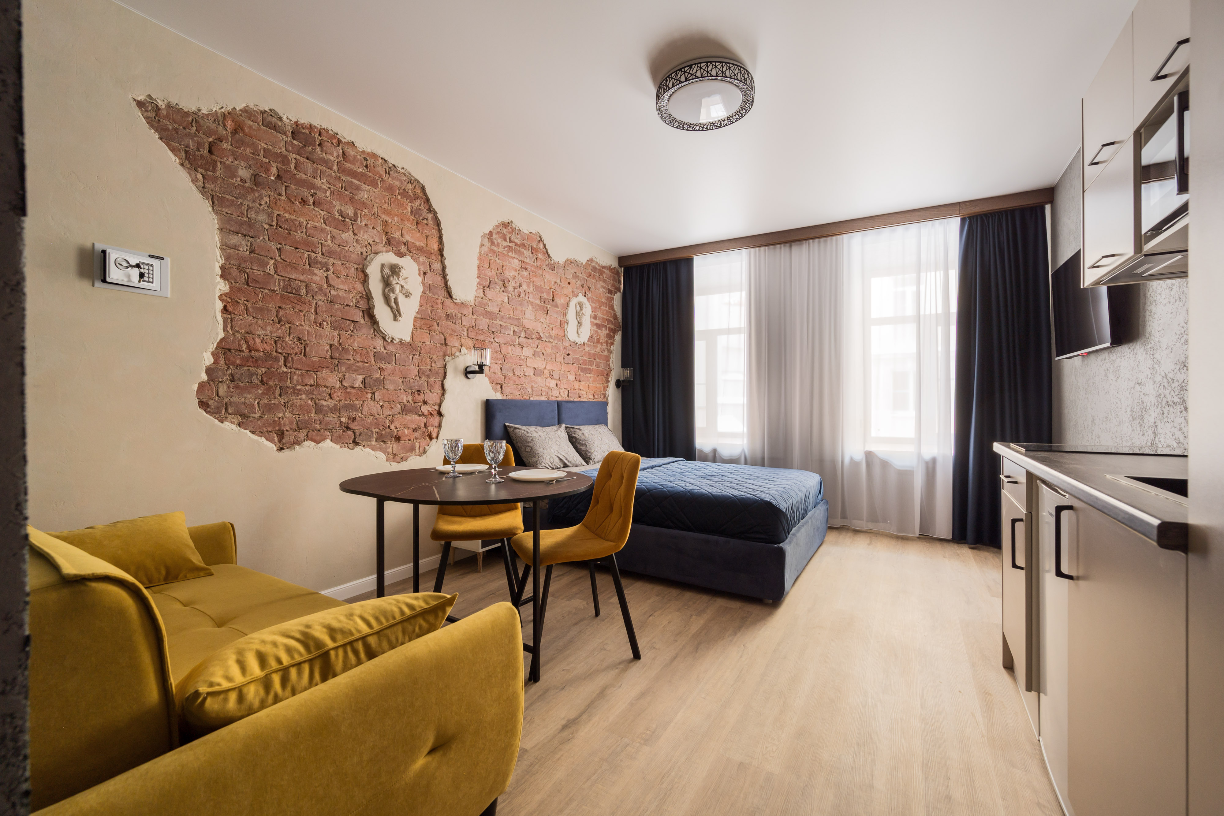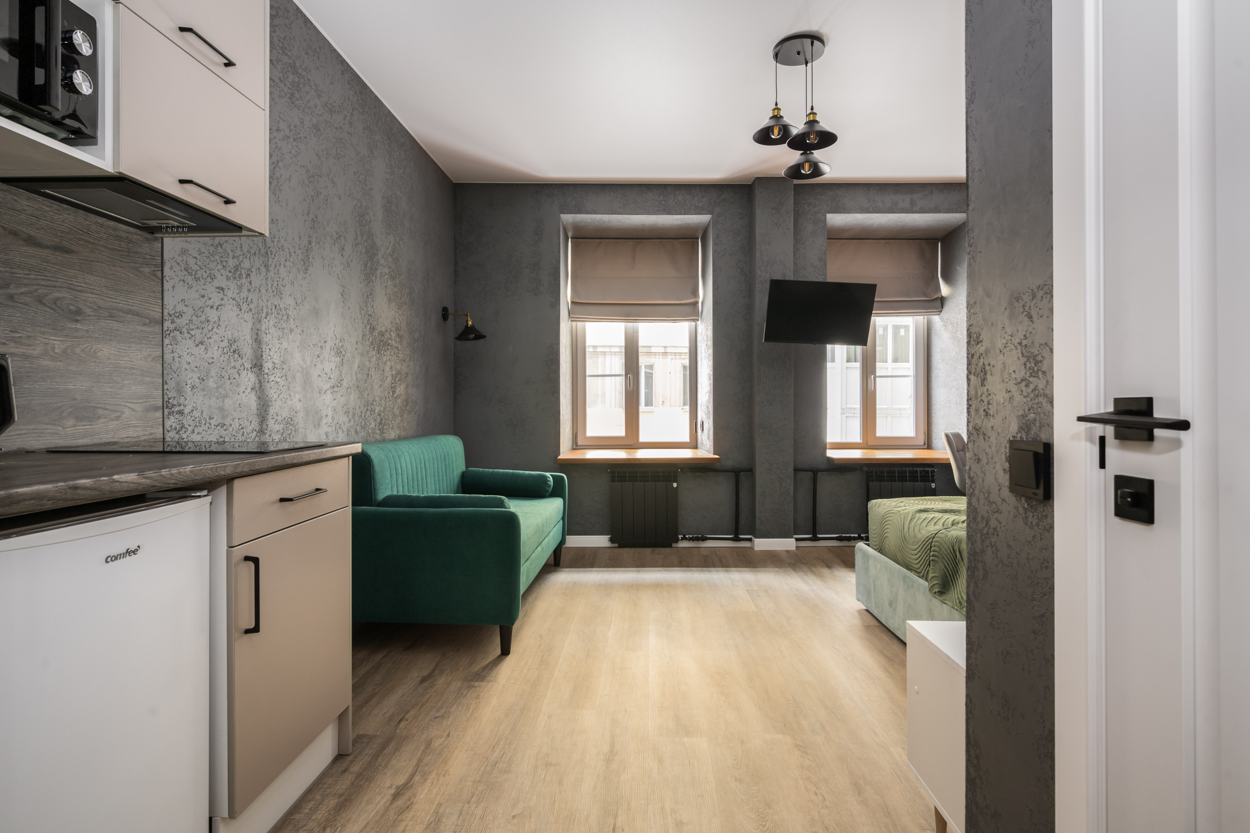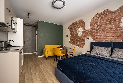 Для гостей на автомобиле в районе есть городские парковки.Просторная студия с современным ремонтом рассчитана на комфортное размещение до четырёх человек. К приезду гостей подготовлено свежее постельное бельё и полотенца. В собственном санузле с душем есть фен и базовый набор гигиенических принадлежностей. Стиральная машина находится в общем коридоре на три студии. Стабильный Wi-Fi позволяет оставаться на связи. Кухонный гарнитур полностью оборудован: электрический чайник, необходимая посуда, обеденный стол со стульями — всё готово для轻松 приготовления и приёма пищи.Эти апартаменты созданы для тех, кто ценит независимость, простор и хочет жить в ритме центра города, но при этом иметь возможность спокойно отдохнуть. Атмосфера здесь лёгкая, домашняя и очень гостеприимная.