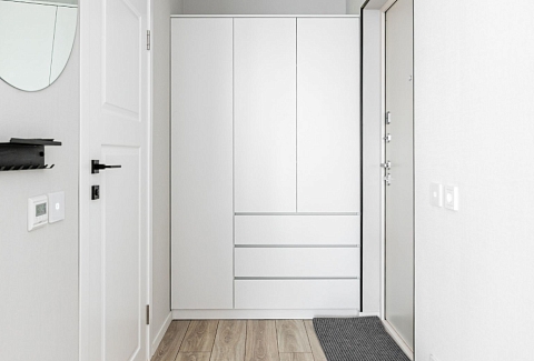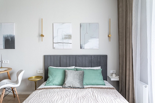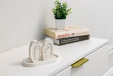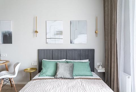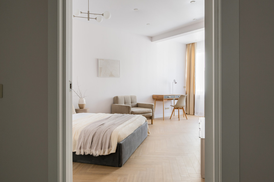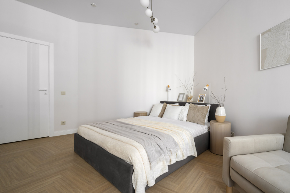 В номере: вешалка, диван раскладной, зеркало, кресло, кровать двуспальная, прикроватные тумбочки, стол, стулья, шкаф, духовой шкаф, микроволновая печь, набор посуды, плита электрическая, посудомоечная машина, стиральная машина, телевизор, холодильник, электрочайник