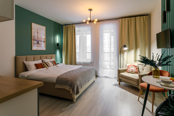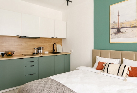 Апартаменты расположены в юго-восточной части Санкт-Петербурга, недалеко от станции метро «Ломоносовская. В шаговой доступности – сетевые супермаркеты, магазины, аптеки, кофейни, а еще Ивановский карьер с садом, музей императорского фарфорового завода, зеленые скверы и парки.Многоэтажное жилое здание, в котором разместились апартаменты возвышается на Фарфоровской улице. В распоряжении гостей номера со стильным интерьером.