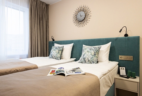 Поездом до ж/д вокзала Московский (г. Санкт-Петербург), далее на метро до станции «Кировский завод», далее пройти 310 м до отеля.