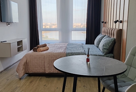 Самолетом до аэропорта Пулково (г. Санкт-Петербург), далее пройти 160 м до остановки общественного транспорта и на маршрутке Аэропорт Пулково -Парковка Р10 двигаться до остановки «Авиационная Улица 9». далее на автобусе №14 двигаться до остановки «Улица Седова 70», далее 770 м до апартаментов.