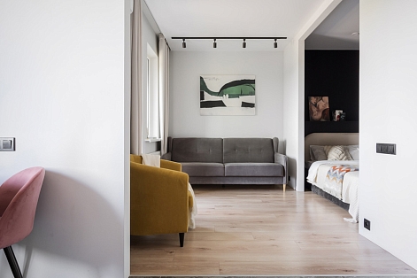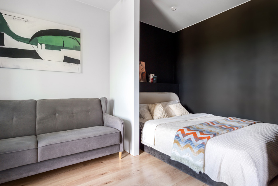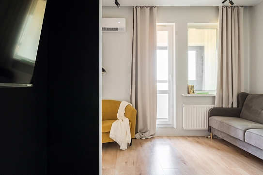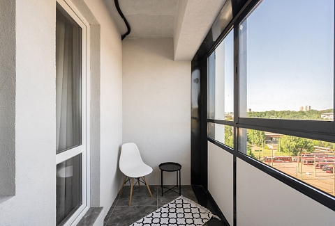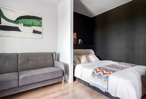 В номере: вешалка, диван раскладной, зеркало, кровать двуспальная, стол, стулья, шкаф, духовой шкаф, микроволновая печь, набор посуды, плита электрическая, посудомоечная машина, стиральная машина, телевизор, холодильник, электрочайник