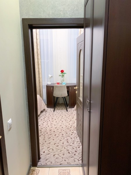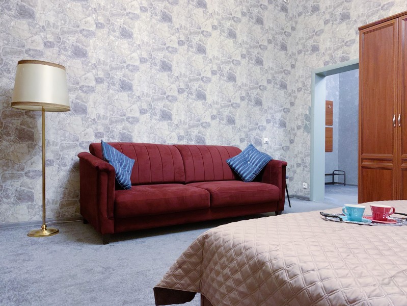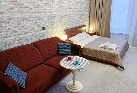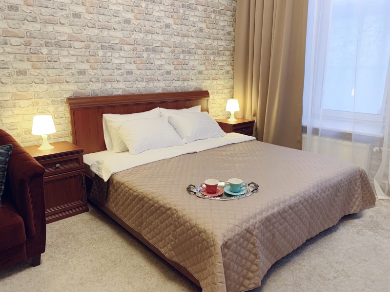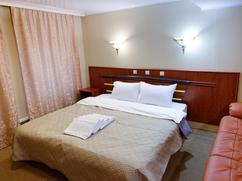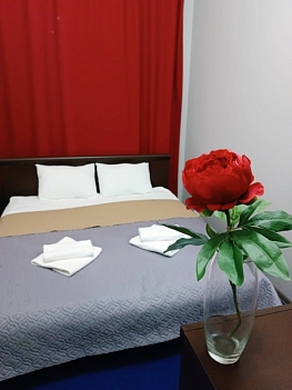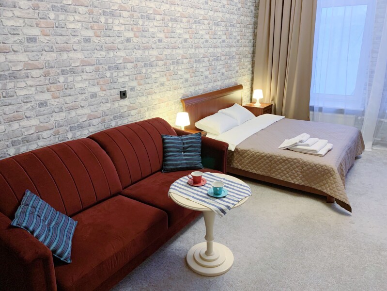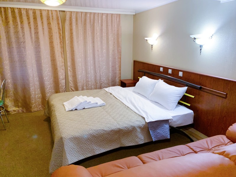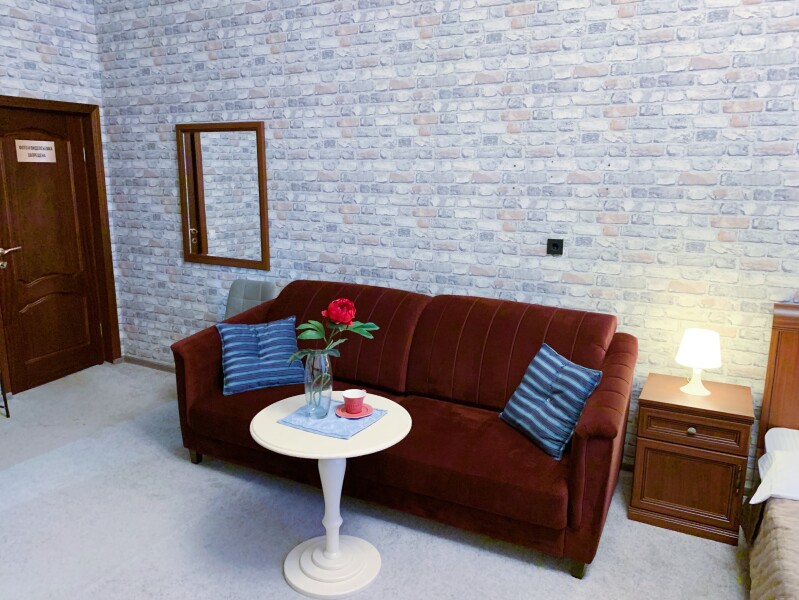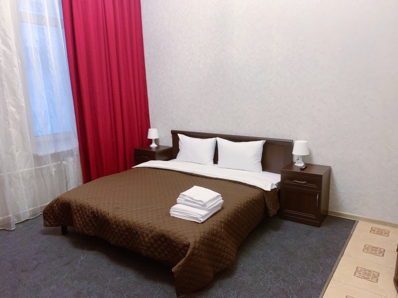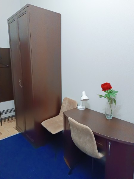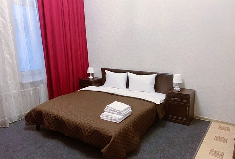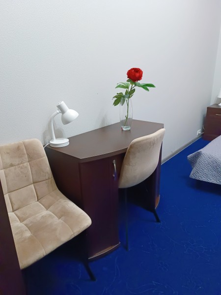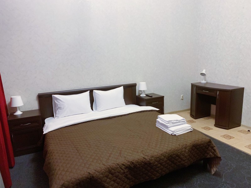 Ближайшие продуктовые магазины и кафе открыты по соседству.Жилой фонд включает несколько вариантов размещения, от бюджетного номера с удобствами на этаже до улучшенных двухкомнатных апартаментов с санузлом. Все категории полностью укомплектованы мебелью и техникой, необходимой для размещения с комфортом. Некоторые комнаты дополнены мини-кухней. На территории мини-отеля работает Wi-Fi.