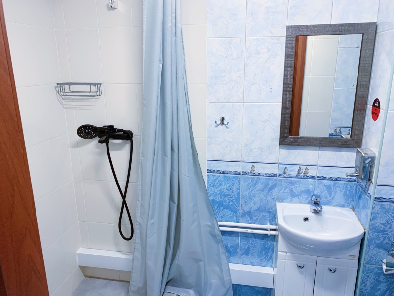 Санузел: с душем, тапочки, туалетные принадлежности, фен