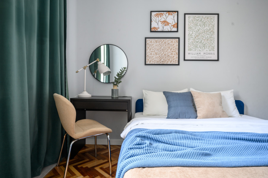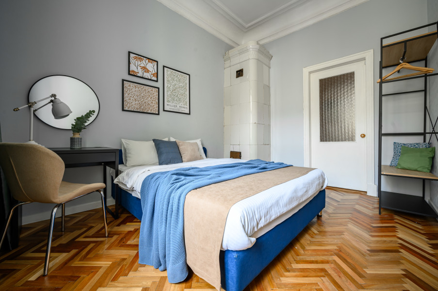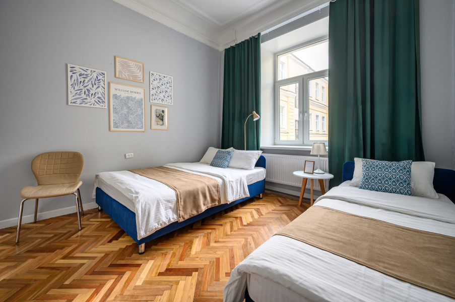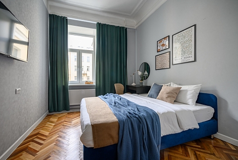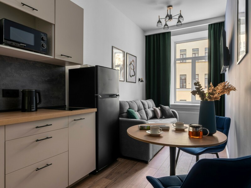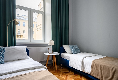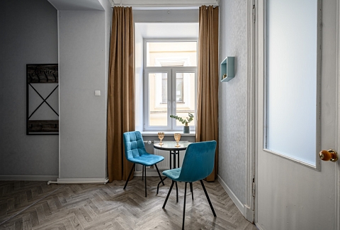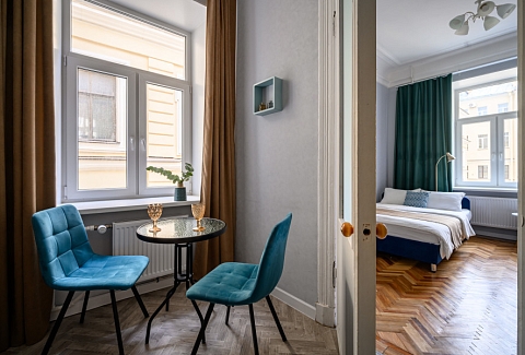 Апартаменты расположились в пятиэтажном историческом здании на набережной реки Мойка. В распоряжении гостей двухкомнатный 7-местный номер со старинной изразцовой печью. Апартаменты оснащены санузлом с ванной, кухней с газовой плитой, есть электрочайник, микроволновая печь и холодильник. Среди прочих удобств – стиральная машина, телевизор и высокоскоростной интернет.