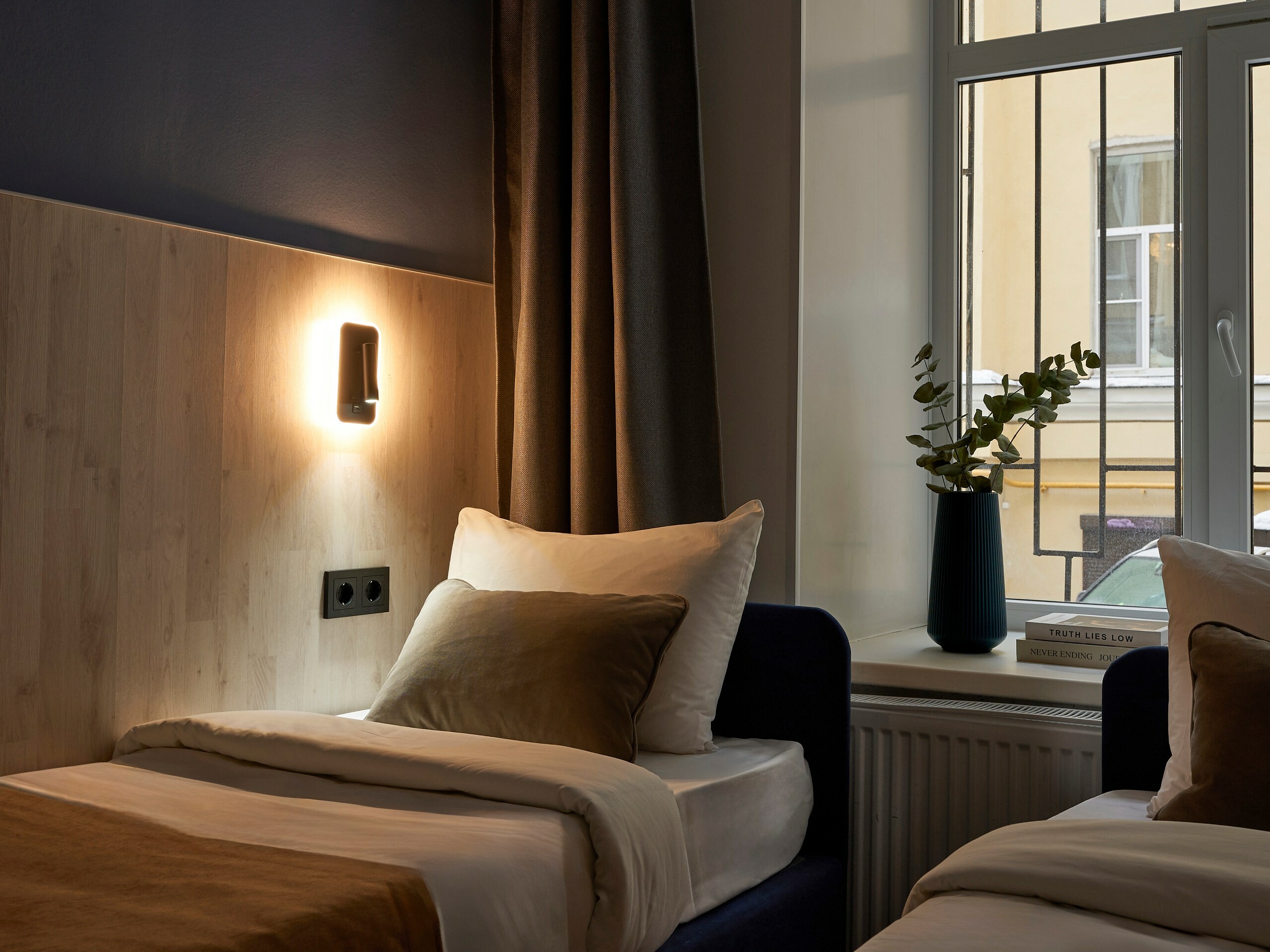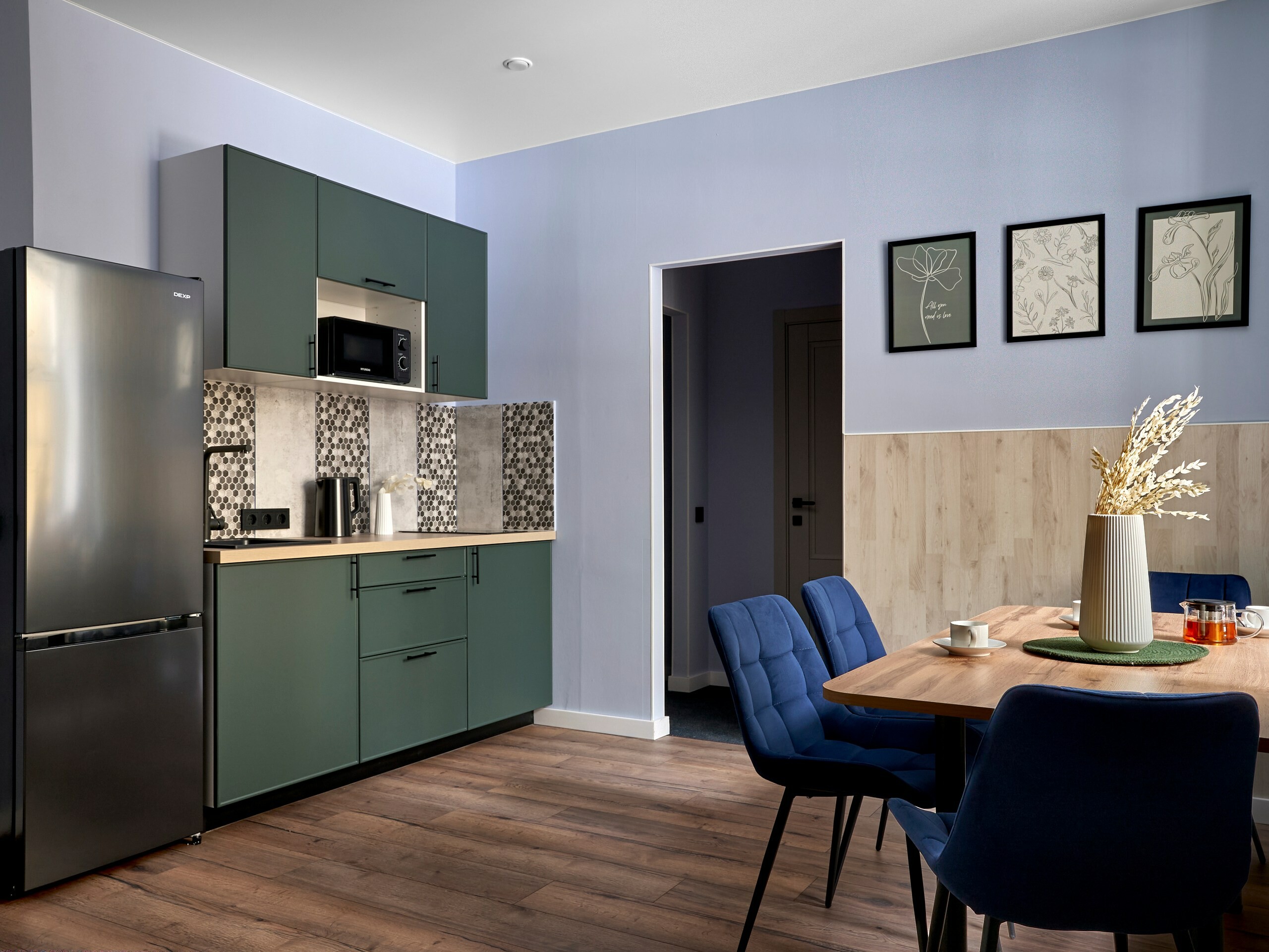 В трёх отдельных спальнях предусмотрены две односпальные кровати в двух комнатах и двуспальная кровать в третьей. Отдельная гостиная зона позволяет проводить время вместе, не нарушая приватность спален. Собственная кухня оснащена плитой, холодильником, микроволновой печью, чайником и всем необходимым для приготовления еды. Есть стиральная машина и утюг. Раздельные душ и туалет избавляют от утренних очередей. Гостей ждут светонепроницаемые шторы, москитные сетки, тапочки, косметические принадлежности, фен. В апартаментах — телевизор и Wi‑Fi.Это пространство создано для тех, кто хочет жить в центре событий, но при этом ценит тишину, уединение и домашний уют. Идеальный выбор для семей, компаний друзей или деловых поездок, где важна и приватность, и возможность быть вместе.