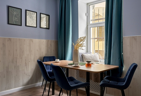 Апартаменты расположены в самом сердце Санкт-Петербурга, на Дворцовой площади, но благодаря окнам во внутренний двор здесь царит тишина и покой, а городской шум остаётся за стенами. В шаговой доступности — Невский проспект, Эрмитаж и главные достопримечательности, а также множество кафе и магазинов. У апартаментов есть отдельный вход, добавляющий ощущение приватности.Пространство рассчитано на комфортное размещение до шести гостей.