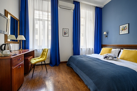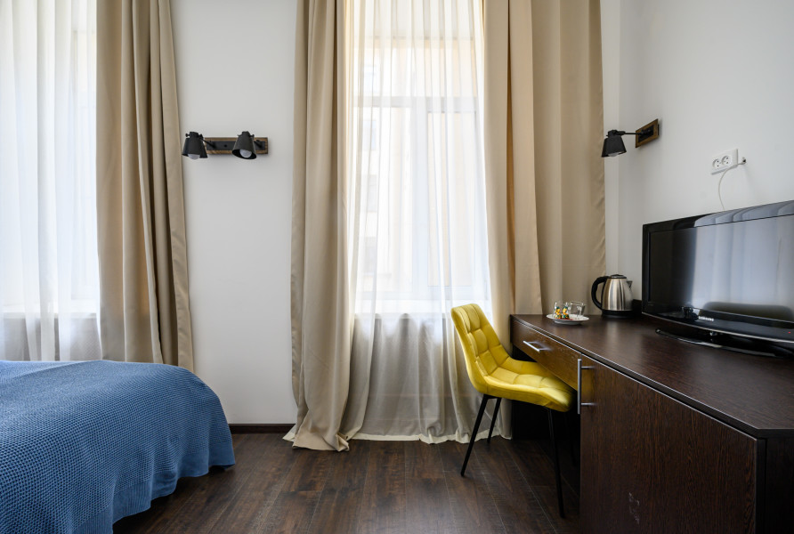 В самом сердце города к услугам постояльцев 10 уютных номеров, готовых обеспечить приятное пребывание.В каждом номере ожидает: одна большая кровать или пара отдельных, в соответствии с предпочтениями. Матрасы повышенной комфортности, мягкие подушки и тёплые одеяла, свежее постельное бельё.Для удобств представлены: телевизор, холодильник, электрочайник и набор для приготовления чая. Индивидуальная ванная комната, фен для волос, туалетные принадлежности.
