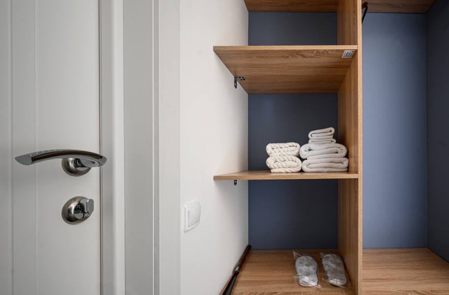 Санузел: с душем, тапочки, туалетные принадлежности, фен