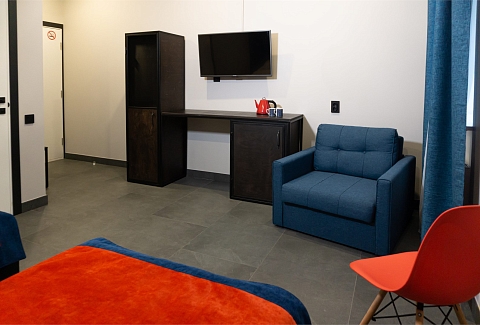 В номере: кровати односпальные /одна двуспальная кровать, прикроватные тумбочки, стол, стулья, шкаф, кондиционер, телевизор, чайная станция