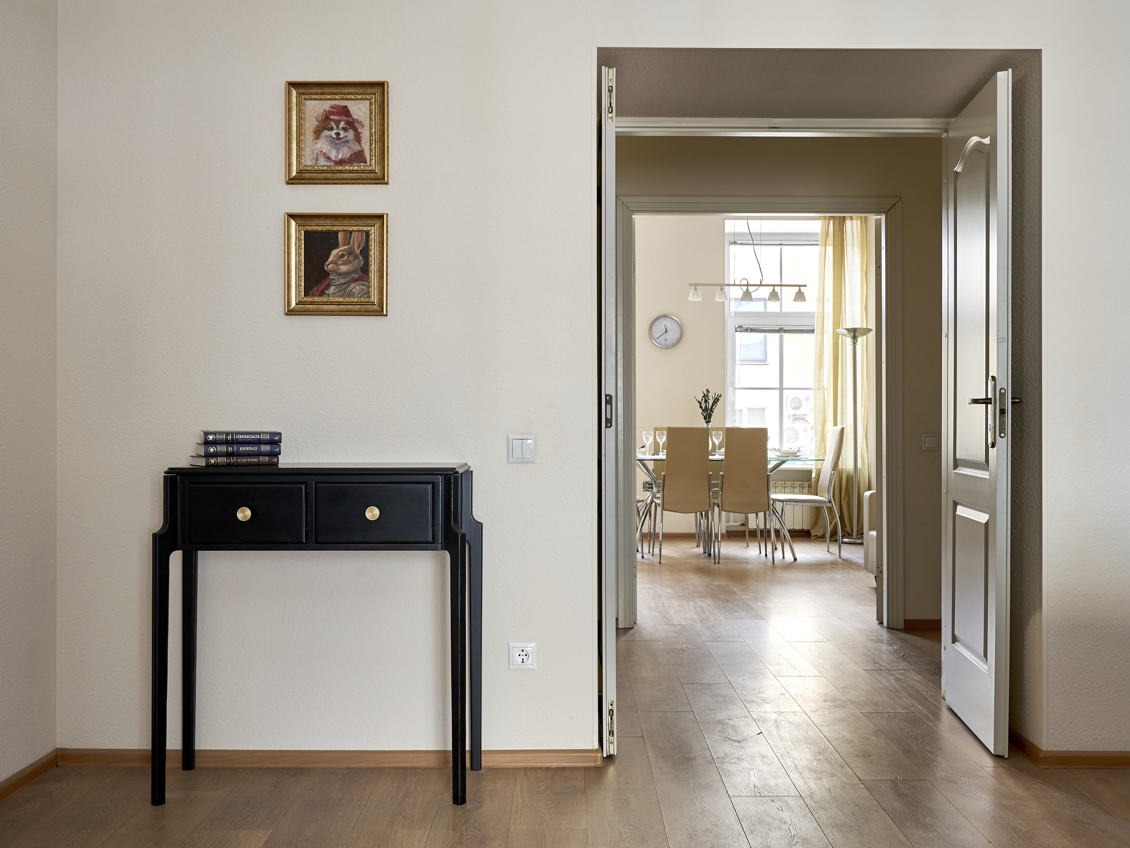 Для тех, кто путешествует на личном автомобиле, предусмотрена бесплатная парковка в закрытом дворе с доступом по брелку.Гостям предлагаются четырёхкомнатные апартаменты внушительной площадью 118 квадратных метров, идеально подходящие как для отдыха, так и для деловых поездок. Внутри создана атмосфера полного комфорта: каждая комната оснащена мебелью, а санузел укомплектован феном, свежим набором полотенец и необходимыми гигиеническими принадлежностями. На всей территории апартаментов работает высокоскоростной Wi-Fi, позволяющий оставаться на связи в любой момент.Эти апартаменты созданы для тех, кто ценит пространство, тишину и хочет жить в ритме культурной столицы, но при этом оставаться в шаге от её главных сокровищ. Благодаря вместительности и продуманной планировке пространство одинаково хорошо подойдёт для семейного отдыха с детьми, компаний друзей, а также для деловых поездок, когда важна и представительность, и комфорт.