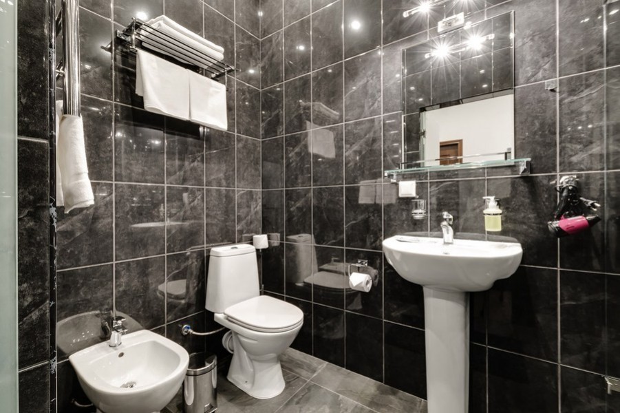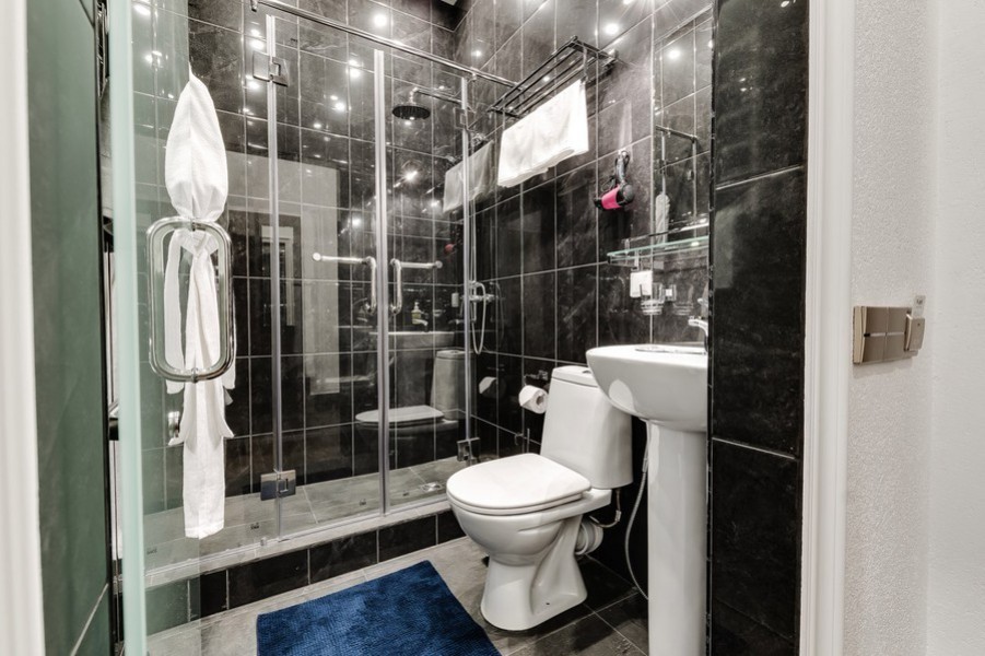 Санузел: с душем, туалетные принадлежности, фен