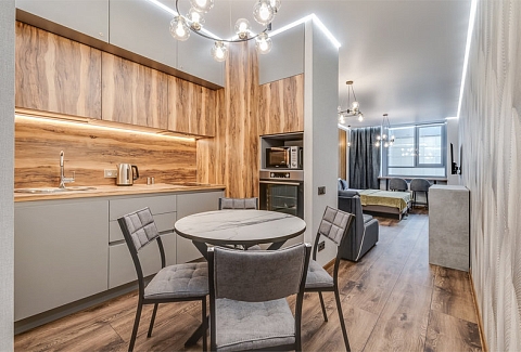 Каждое пространство продумано до мелочей: полностью оснащённая кухня с плитой, микроволновой печью, холодильником, чайником и всей необходимой посудой, стиральная машина, телевизор со Smart TV и бесплатный Wi-Fi. Особый уют создаёт электрический камин. В апартаментах предусмотрены удобные спальные места, качественное постельное бельё и полотенца, фен и утюг. Для маленьких гостей по запросу предоставляется стульчик для кормления.Это место идеально подходит как для деловых поездок, так и для романтических выходных. Продуманный сервис, включающий организацию трансфера, такси и экскурсий, позволяет гостям сосредоточиться на приятных впечатлениях. Атмосфера современного комфорта, безупречная чистота и удобное расположение делают эти апартаменты отличным выбором для знакомства с Петербургом.