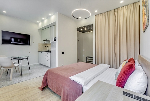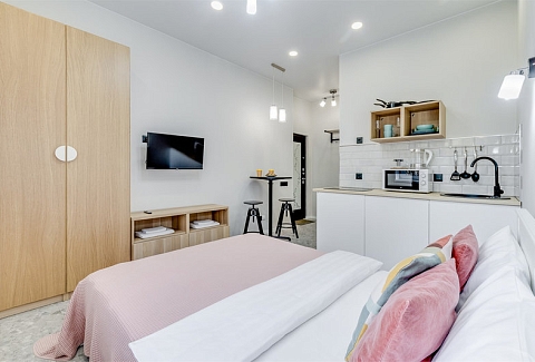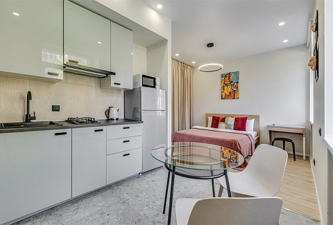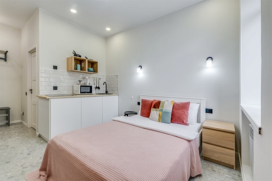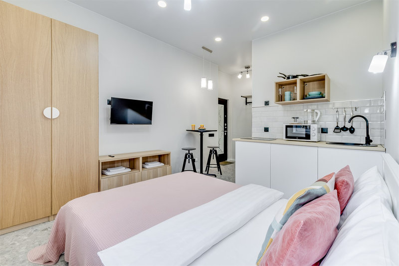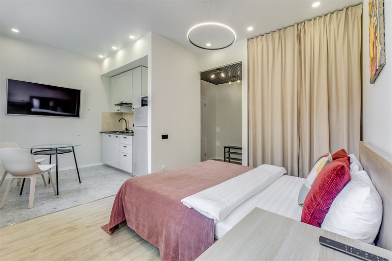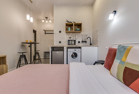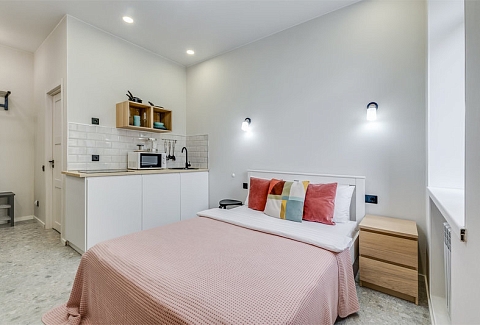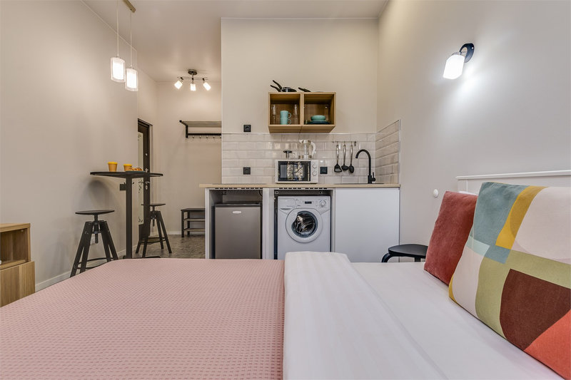 Каждое пространство оборудовано полноценной кухонной зоной с электрической плитой, холодильником, микроволновой печью, чайником и набором посуды. В студиях есть удобные спальные места, телевизор с цифровыми каналами, фен, утюг и стиральная машина. Санузел оснащён душевой кабиной. Гостям предоставляются свежее постельное бельё, полотенца, чай и сахар. На всей территории доступен бесплатный Wi-Fi.Тишина, уют и продуманное оснащение позволяют чувствовать себя совершенно свободно как в краткосрочной, так и в длительной поездке. Администрация поможет с заказом такси, трансфера или экскурсий. Это место идеально подходит для тех, кто ценит современный комфорт, спокойствие и удобную транспортную доступность вдали от туристического шума, но с быстрым доступом ко всем знаковым местам Петербурга.