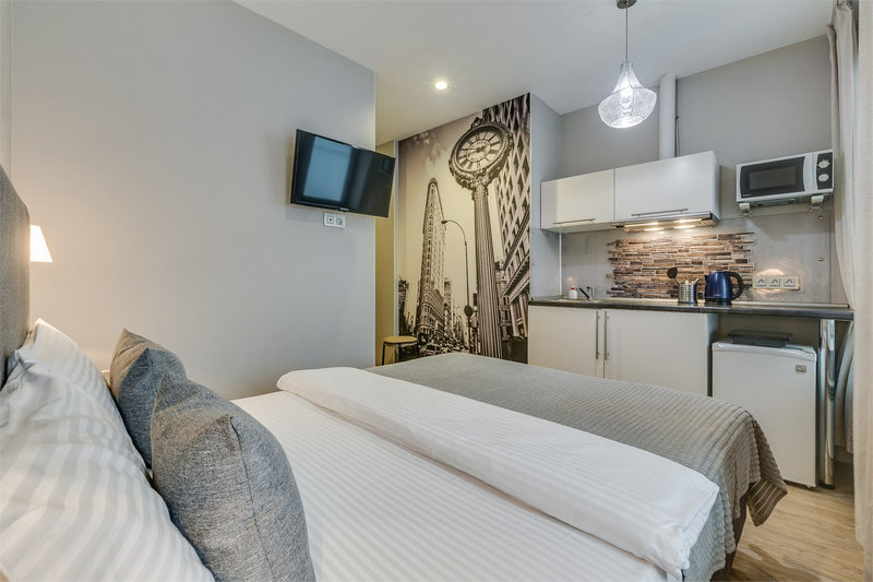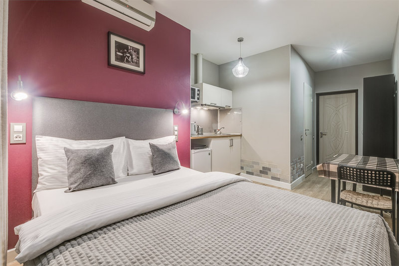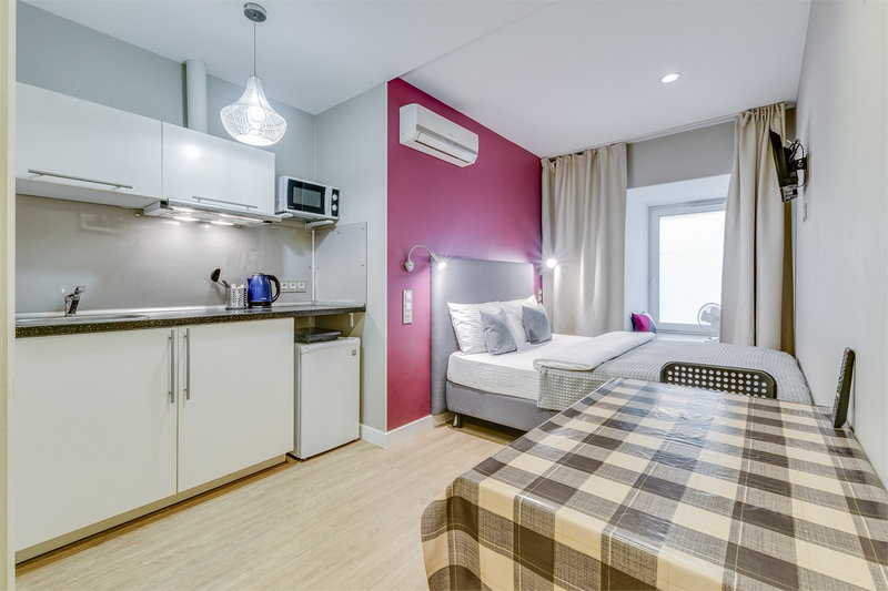Сами апартаменты находятся на первом этаже в тихом закрытом дворе, что гарантирует спокойствие и уединение в самом сердце города.Гостям предлагаются студии площадью с высокими потолками и продуманной планировкой. Каждая студия оснащена собственной мини-кухней с электрической плитой, холодильником, чайником, чаем и сахаром. В зависимости от категории в номерах установлены двуспальные кровати, которые могут трансформироваться в две односпальные. В некоторых студиях предусмотрены дополнительные спальные места. Все номера оборудованы телевизором с кабельными каналами, феном, утюгом, а также системами хранения. В ванных комнатах — душ, тёплые полы, свежие полотенца и постельное бельё. На всей территории доступен бесплатный Wi-Fi.Для маленьких гостей по запросу предоставляются детская кроватка и стульчик для кормления. Администрация поможет с организацией трансфера, такси или экскурсий. Это место идеально подходит для тех, кто хочет жить в историческом центре с комфортом и свободой, наслаждаясь тишиной и атмосферой старого Петербурга.