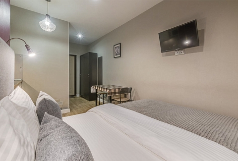 В номере: вешалка, зеркало, кровати односпальные /одна двуспальная кровать, стол, стул, микроволновая печь, мини-холодильник, набор посуды, телевизор, чайник