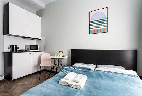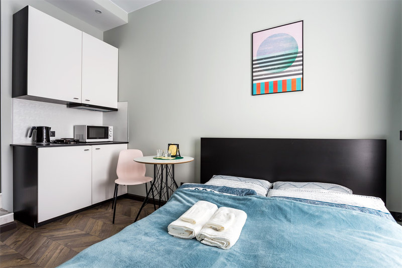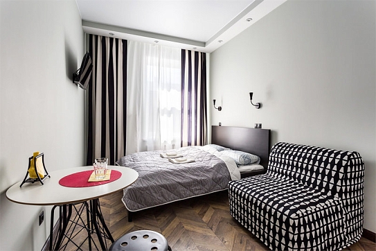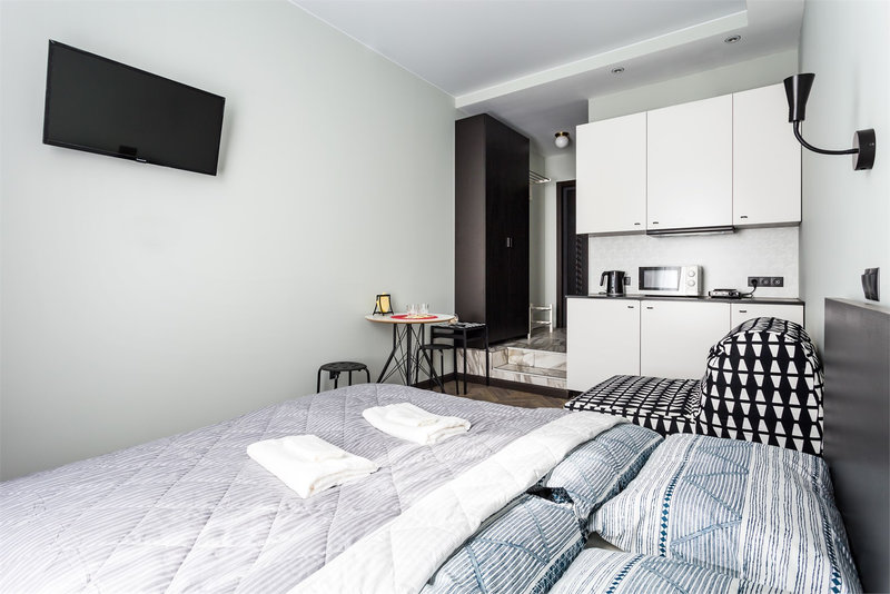 Дом находится в закрытом дворе, что гарантирует тишину и уединение.В пяти студиях на третьем этаже созданы все условия для комфортного проживания. Высокие потолки и хорошая шумоизоляция дарят ощущение простора и покоя. В каждом номере есть телевизор с цифровыми каналами, фен, утюг, чай и сахар. Гостям предоставляются свежее постельное бельё и полотенца. На всей территории работает бесплатный Wi-Fi.Для маленьких путешественников по запросу предоставляются детская кроватка и стульчик для кормления. Это место идеально подходит для тех, кто хочет жить в историческом центре, наслаждаясь уютом и спокойствием после насыщенных прогулок по Петербургу.
