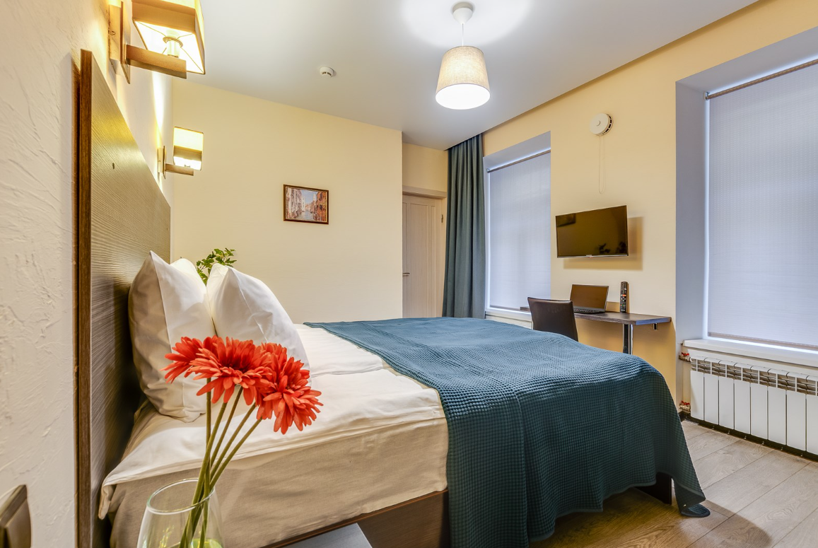 Каждый номер оснащён большой двуспальной кроватью с новыми ортопедическими матрасами, телевизором с цифровыми каналами, холодильником и письменным столом. В распоряжении гостей собственная ванная комната с душем или ванной, полотенцами и базовыми гигиеническими принадлежностями. На всей территории работает беспроводной Wi-Fi.На этаже для общего пользования оборудована кухонная зона с микроволновой печью, а также установлен кулер с питьевой водой. Для гостей с детьми по запросу предоставляются детские кроватки и стульчики. Администрация также поможет с организацией такси, трансфера или подбором экскурсий. Это место, где продуманный комфорт и выгодное расположение создают идеальные условия для пребывания в Северной столице.