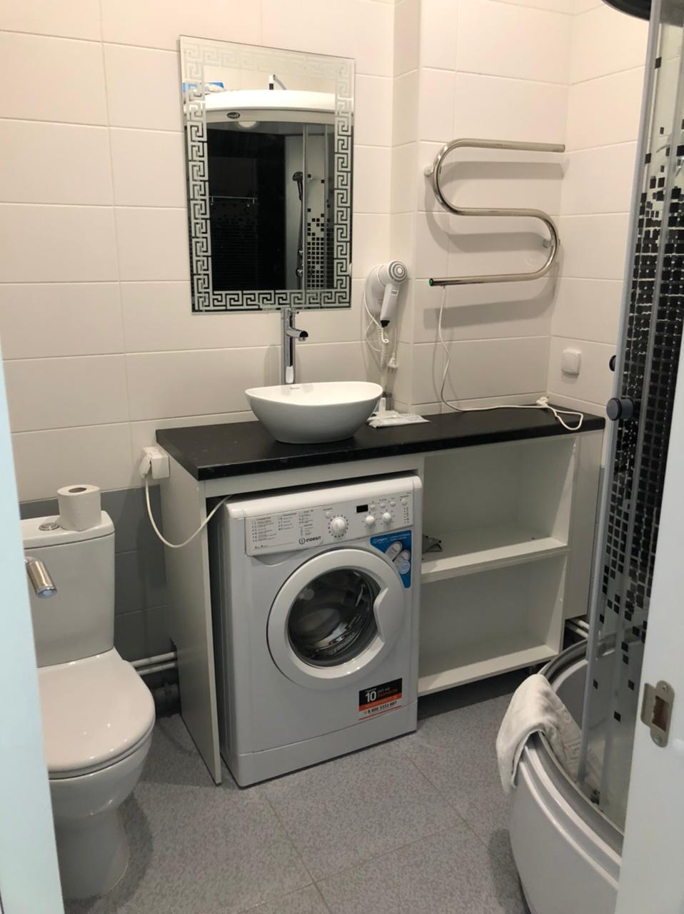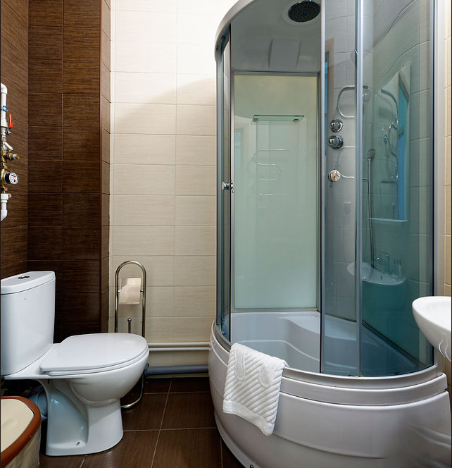 Санузел: с душевой кабиной, туалетные принадлежности, фен