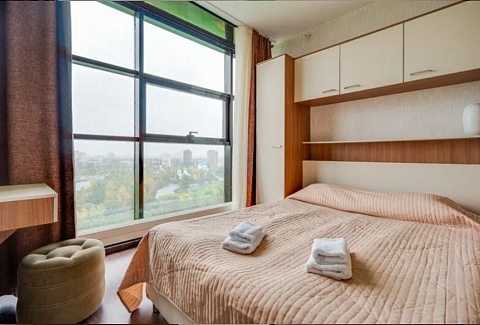 Номерной фонд разного уровня вместимости расположился в 6 корпусах высотой в 16 этажей. Для удобства гостей в зданиях есть лифт. Интерьер комнат современный, выполнен в ярких оттенках. В каждой из них есть большая кровать для отдыха, шкаф для хранения одежды, рабочая зона. Также к услугам гостей телевизор, Wi-Fi, индивидуальный санузел с душевой кабиной, набором полотенец, туалетными принадлежностями и феном. Есть собственная кухня, где можно готовить или разогревать еду. Отдыхающим предоставляется возможность воспользоваться следующими услугами и удобствами: химчистка/прачечная, круглосуточная стойка регистрации. трансфер до/из аэропорта.