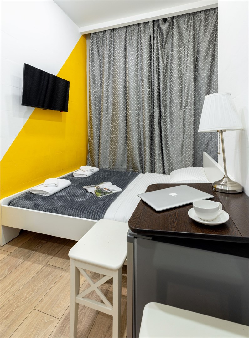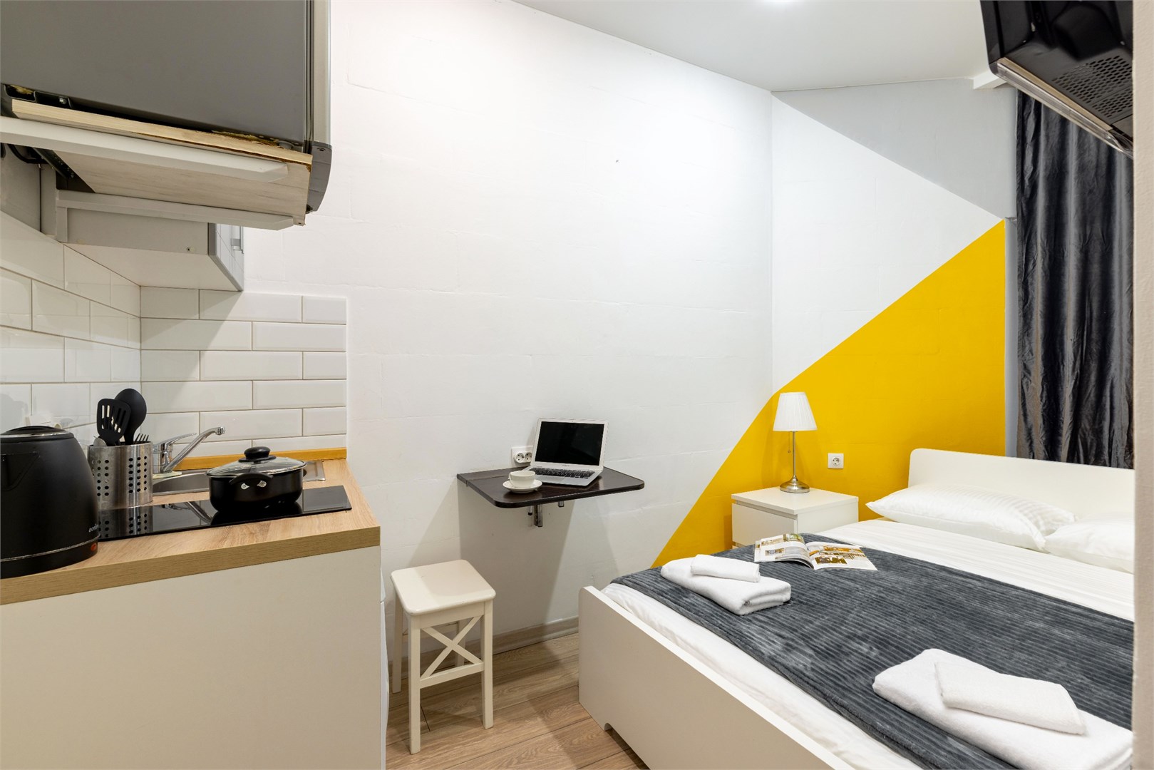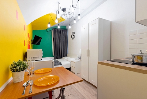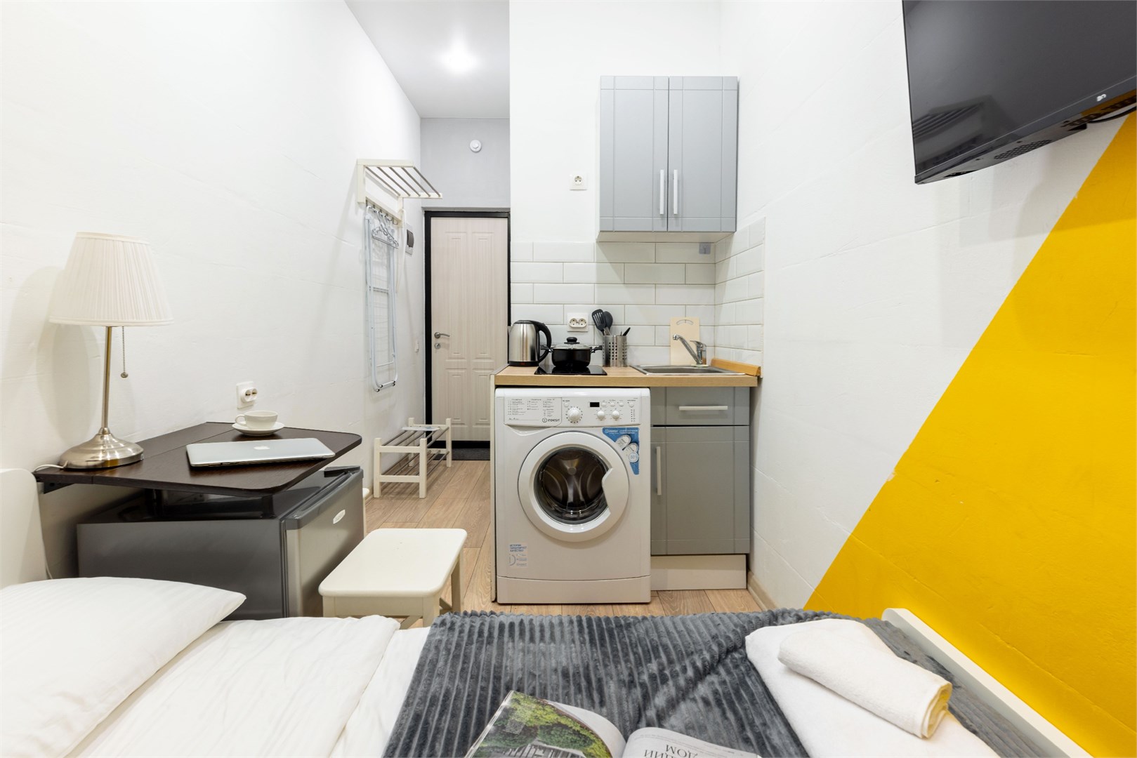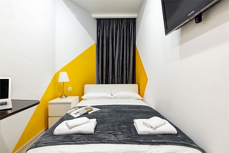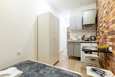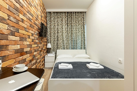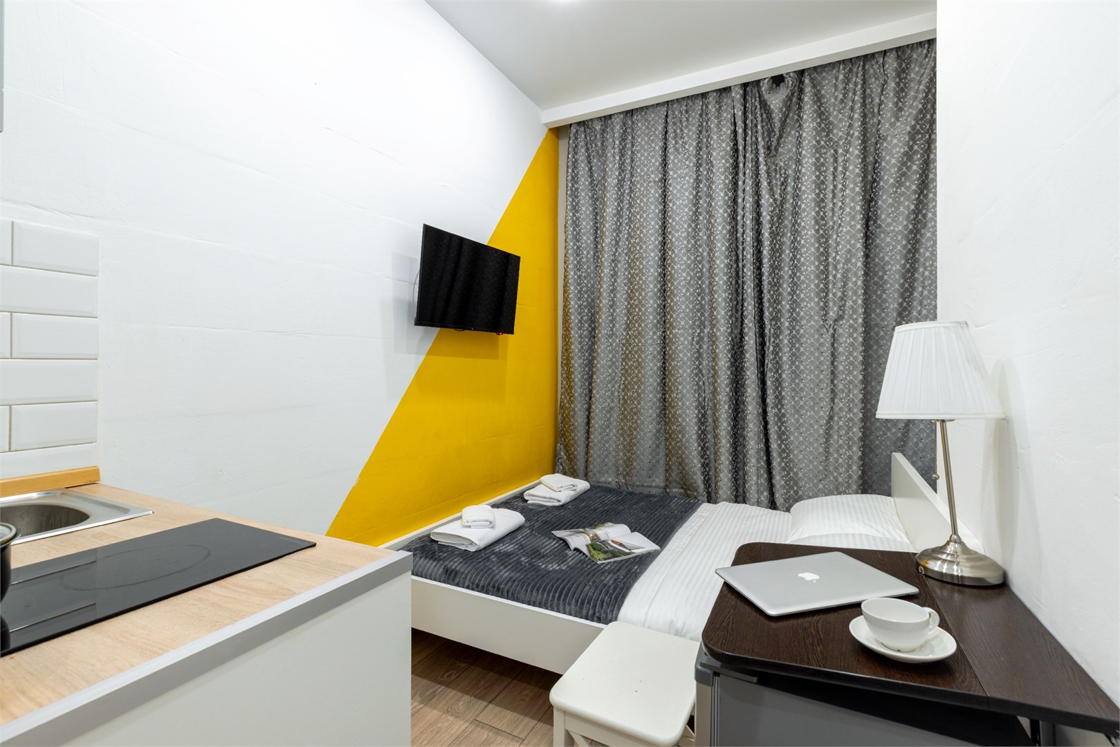 Светлые уютные апартаменты с дизайнерским ремонтом вместимость до 2 гостей расположены на цокольном этаже здания с окнами, обращенными во двор. В 3 минутах ходьбы расположена станция метро Спортивная. В апартаментах есть двуспальная кровать с удобным матрацем, телевизор, кухонная зона с необходимым для приготовления пищи оборудованием, бесплатный доступ в интернет wi-fi.
