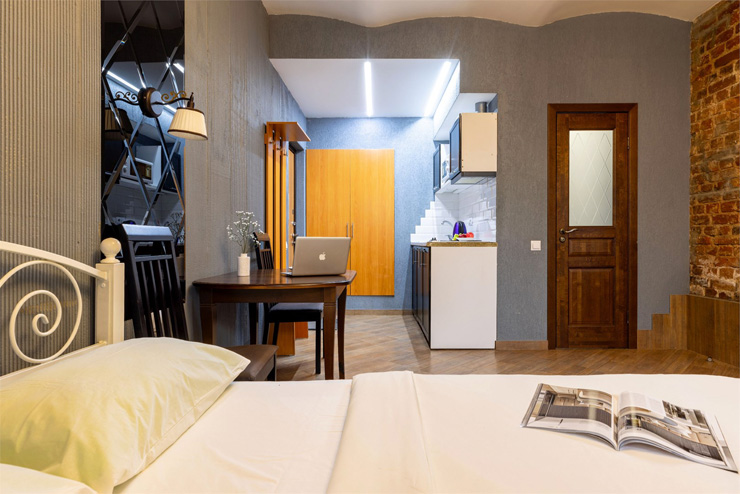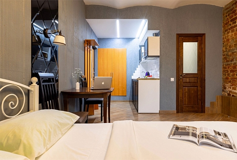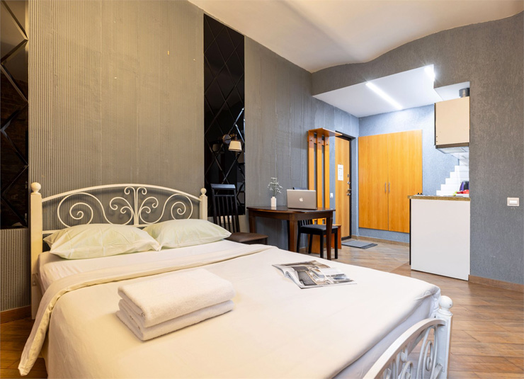 «Сити Групп на 8-ой Советской» - это светлые и уютные апартаменты с дизайнерским ремонтом площадью 15 кв.м. Вместимость до 2 гостей, в номере есть двуспальная кровать с удобным матрацом, телевизор, wi-fi. Апартаменты оборудованы кухонной зоной со всем необходимым - плита, холодильник, чайник, набор посуды.