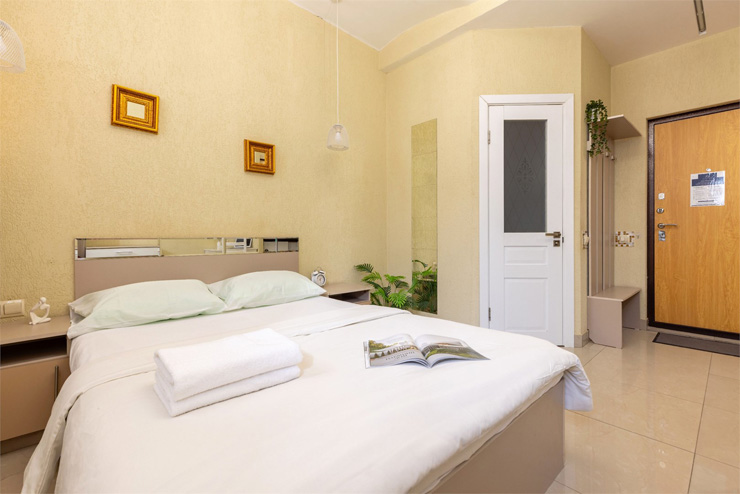 Самолетом до аэропорта Пулково (г. Санкт-Петербург), далее на рейсовом автобусе №39 до остановки «ул. Авиационная», далее на метро до станции «Площадь Александра Невского-1», далее на рейсовом автобусе №59 до остановки «8-я Советская улица», далее пройти пешком 190 м до апартаментов.