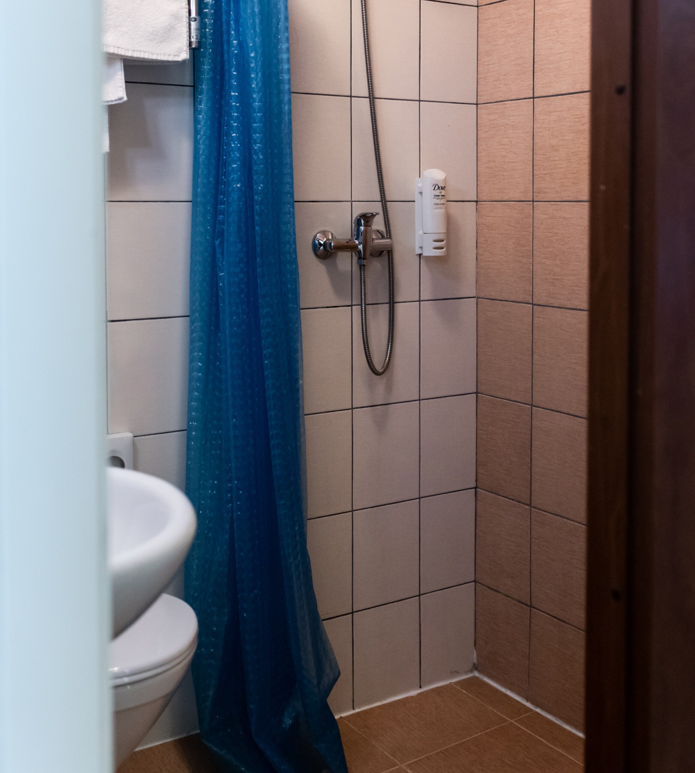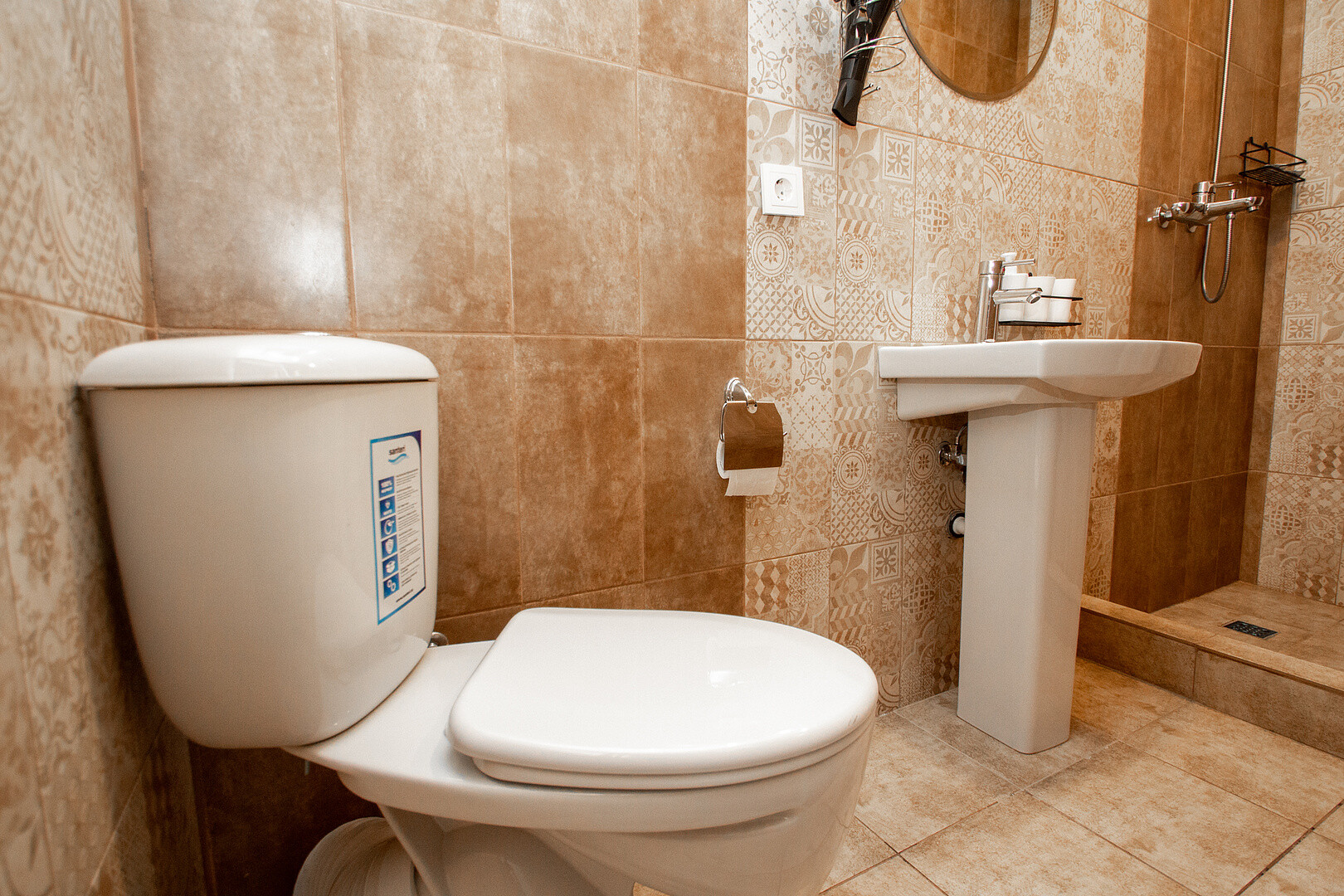 Санузел: с душем, тапочки, туалетные принадлежности, фен