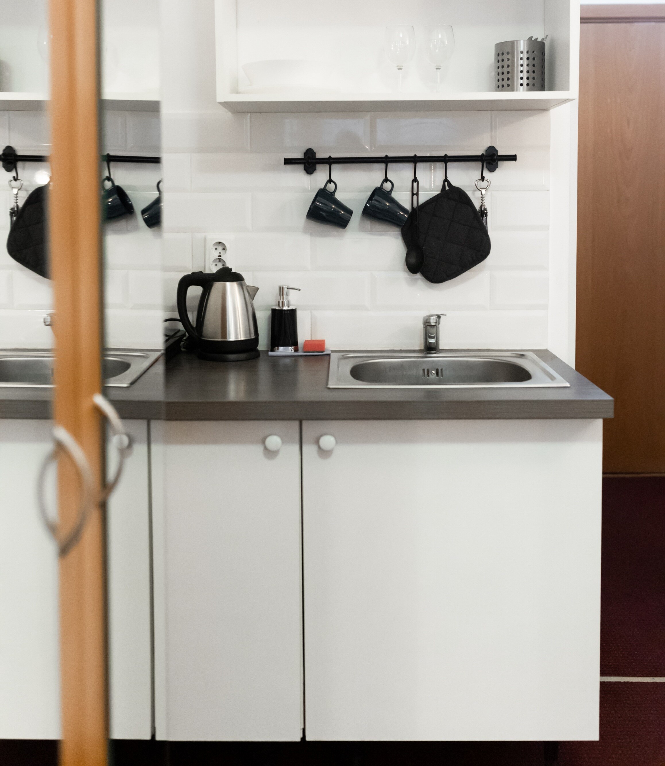 В номере: вешалка, зеркало, кровати односпальные, стол, стулья, шкаф, мини-холодильник, набор посуды, плита электрическая, телевизор, электрочайник
