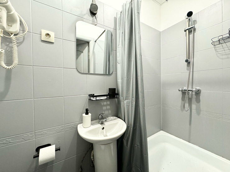 Санузел: с душем, тапочки, туалетные принадлежности, фен