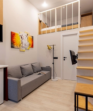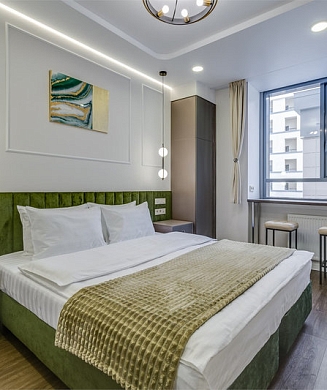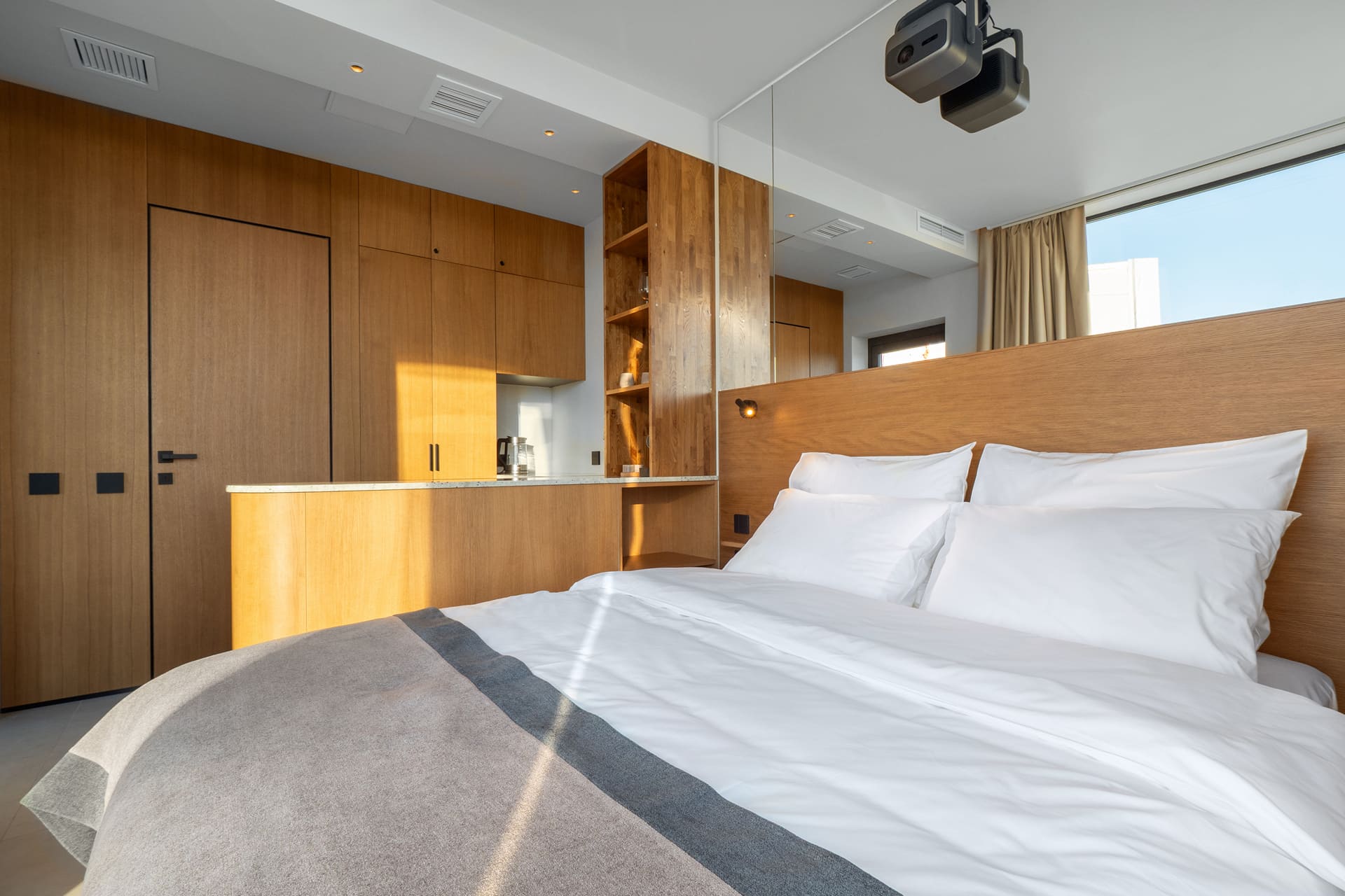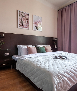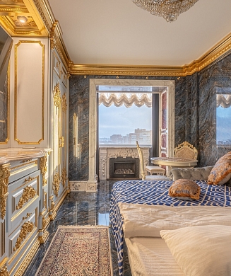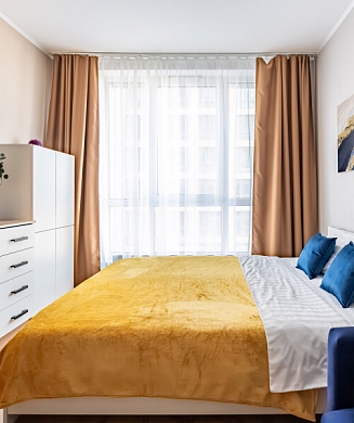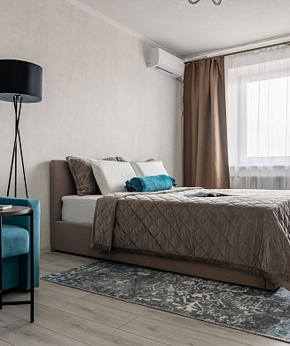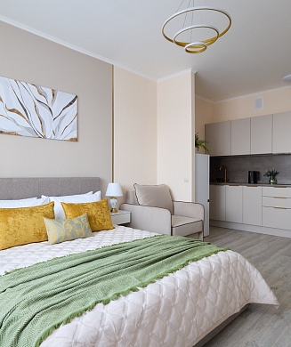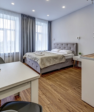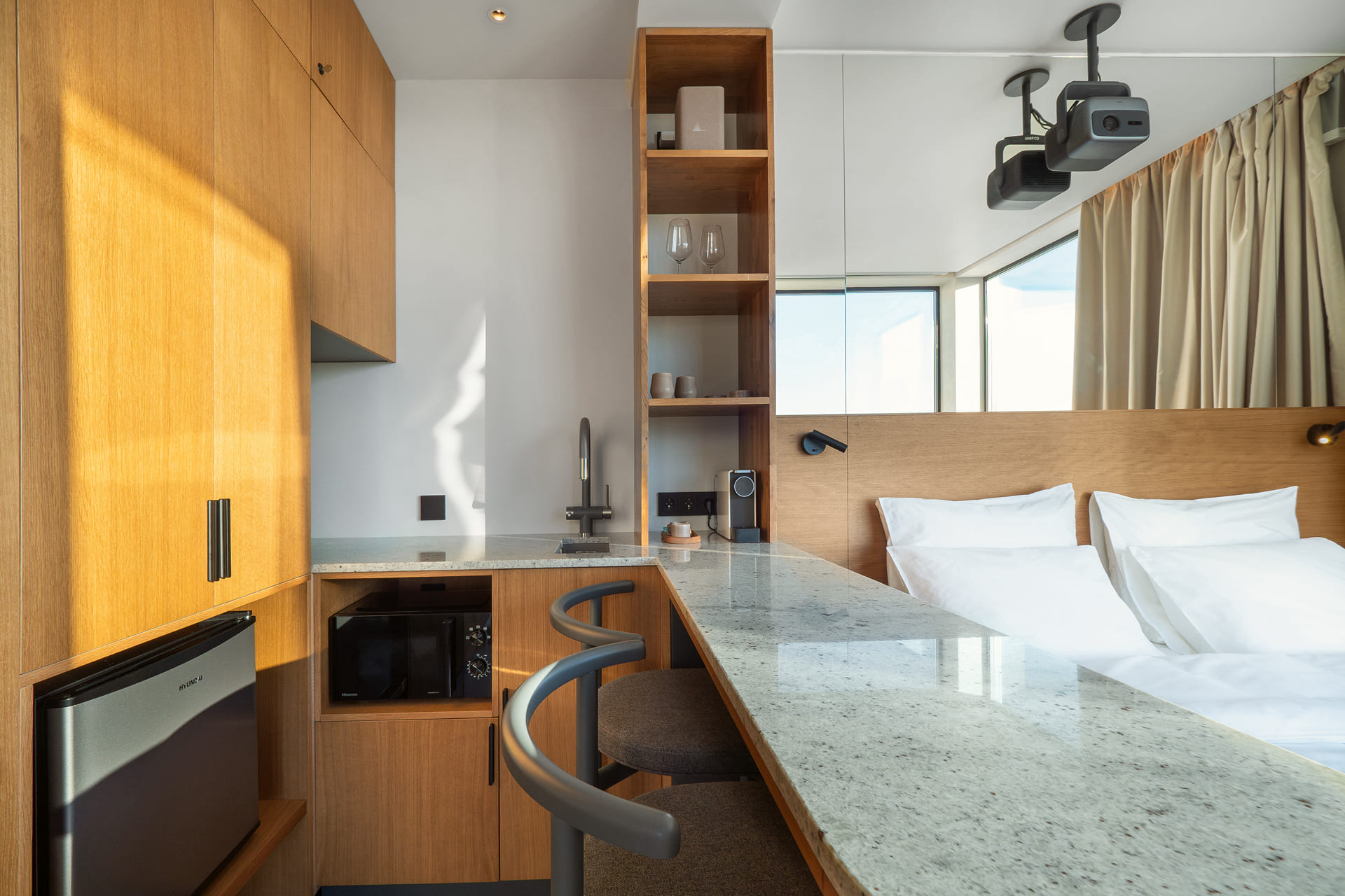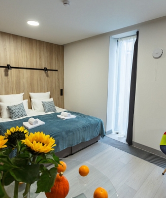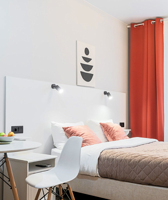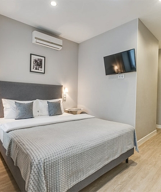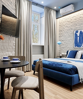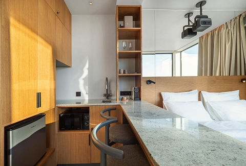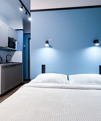 В номере: кровать двуспальная, стулья, шкаф, кондиционер, микроволновая печь, мини-холодильник, набор посуды, проектор мультимедийный, чайная станция, чайный набор посуды, электрочайник