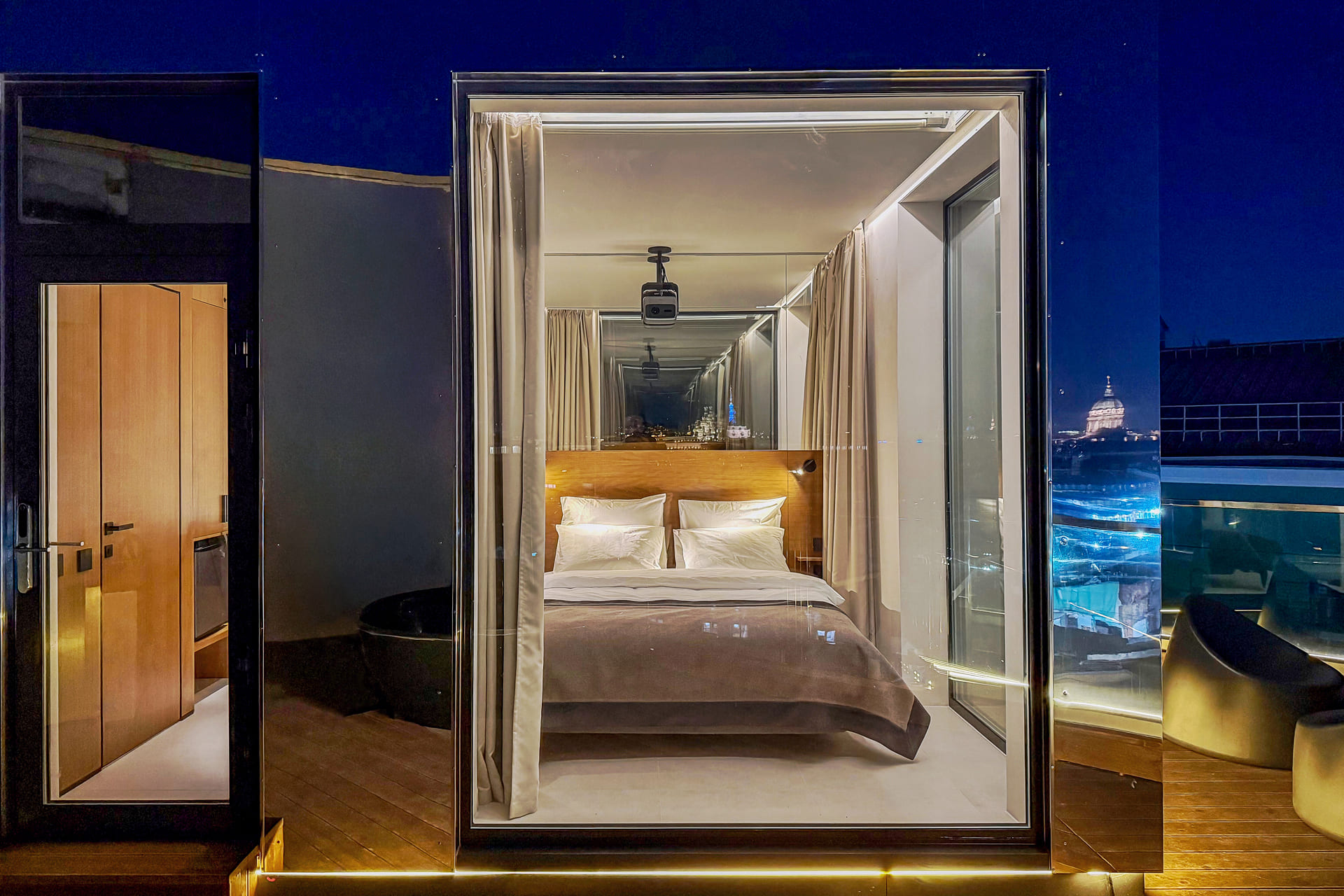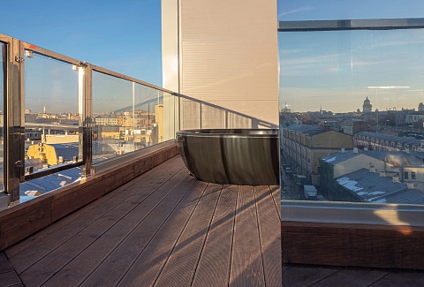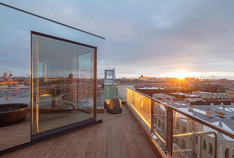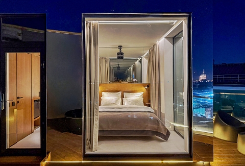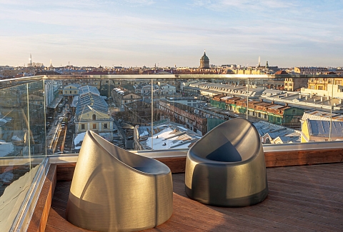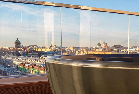 В одной из самых живописных локаций Санкт-Петербурга, на крыше исторического комплекса «Лениздат» у набережной реки Фонтанки, расположился уникальный сити-глэмпинг «Скайфолл». Пешая доступность здесь измеряется не расстоянием до магазинов или кафе. Инфраструктура центра — остановки транспорта, аптеки, знаменитые рестораны — находится в нескольких минутах ходьбы от входа в здание.