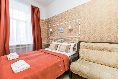 Поездом до ж/д вокзала Московский (г. Санкт-Петербург), далее на метро до станции «Сенная площадь», далее пройти пешком 410 м до отеля.
