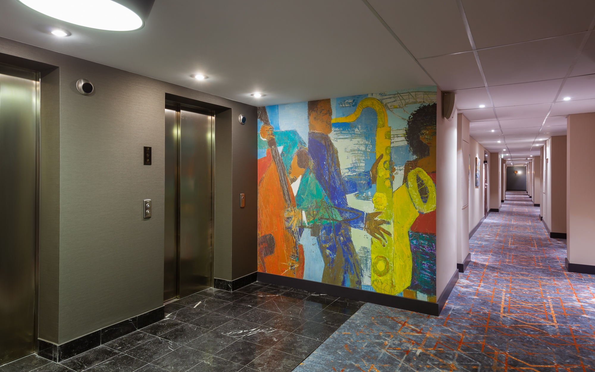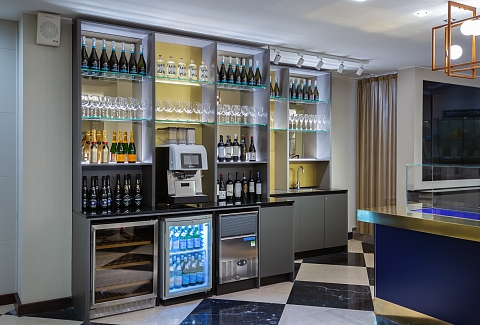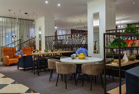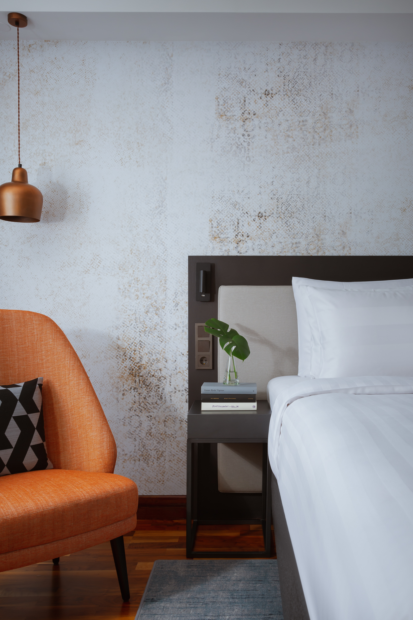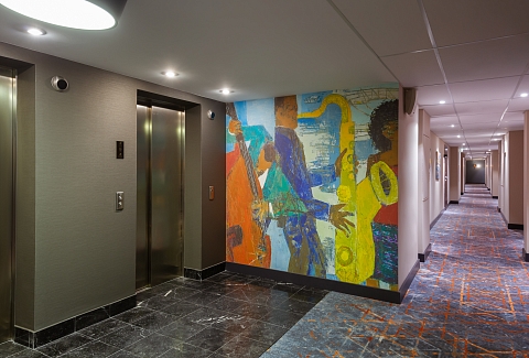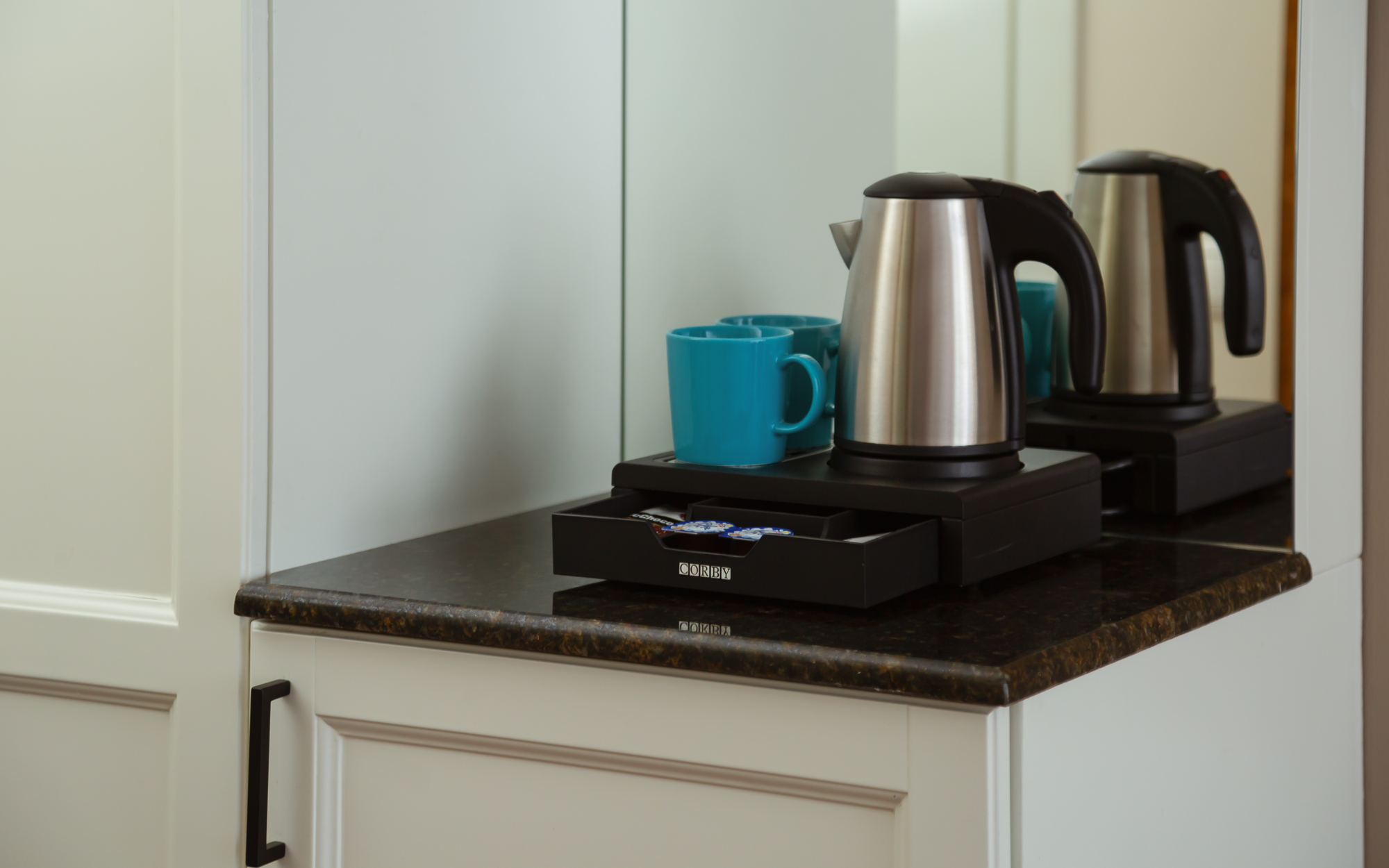 В номере: вешалка, диван, зеркало, кресло, прикроватные тумбочки, стол, шкаф, гладильная доска, кондиционер, кофемашина, мини-холодильник, сейф, телевизор, телефон, утюг, чайный набор посуды, электрочайник
