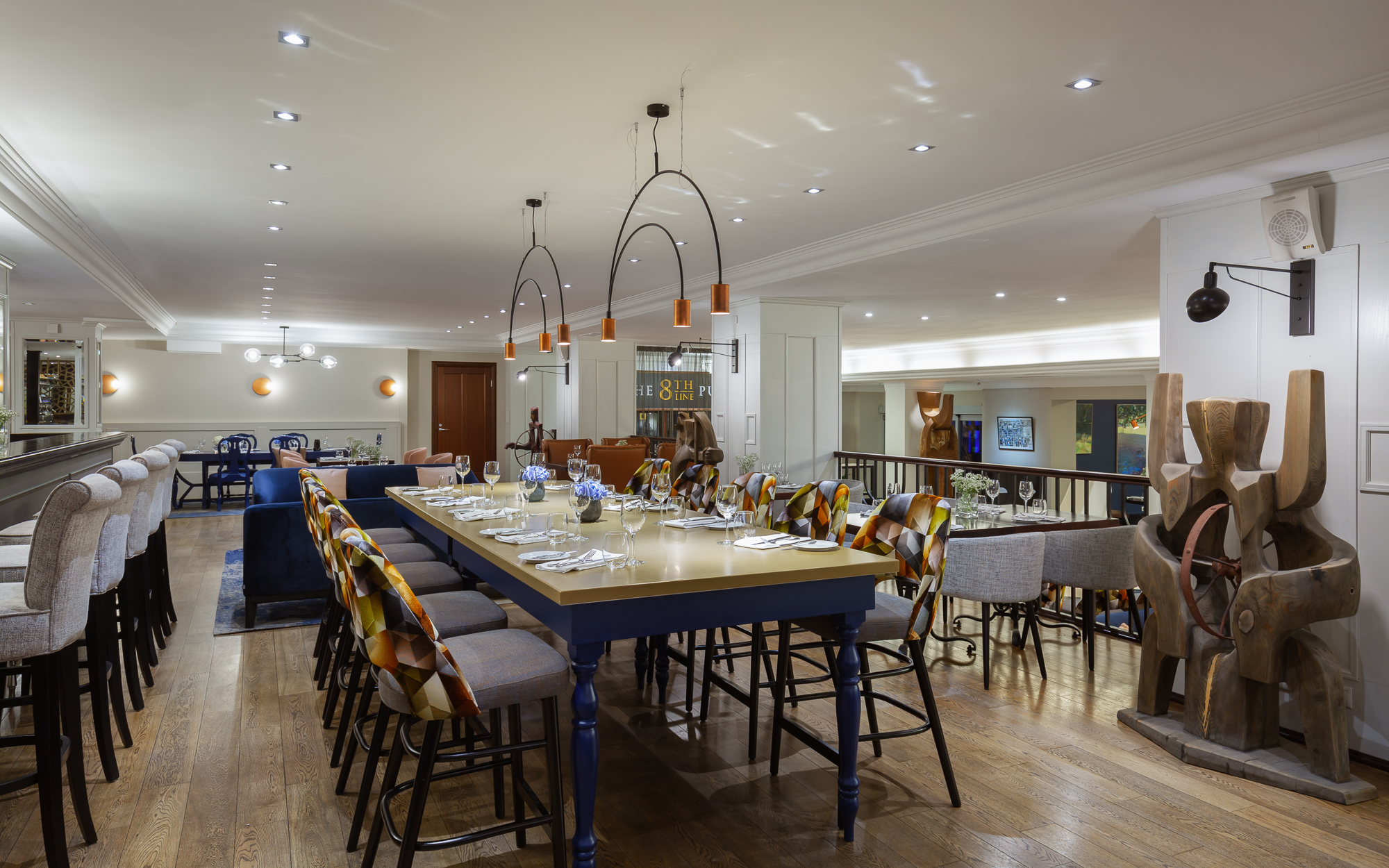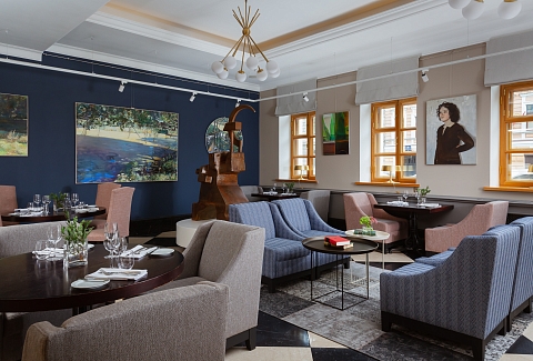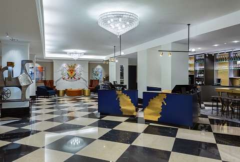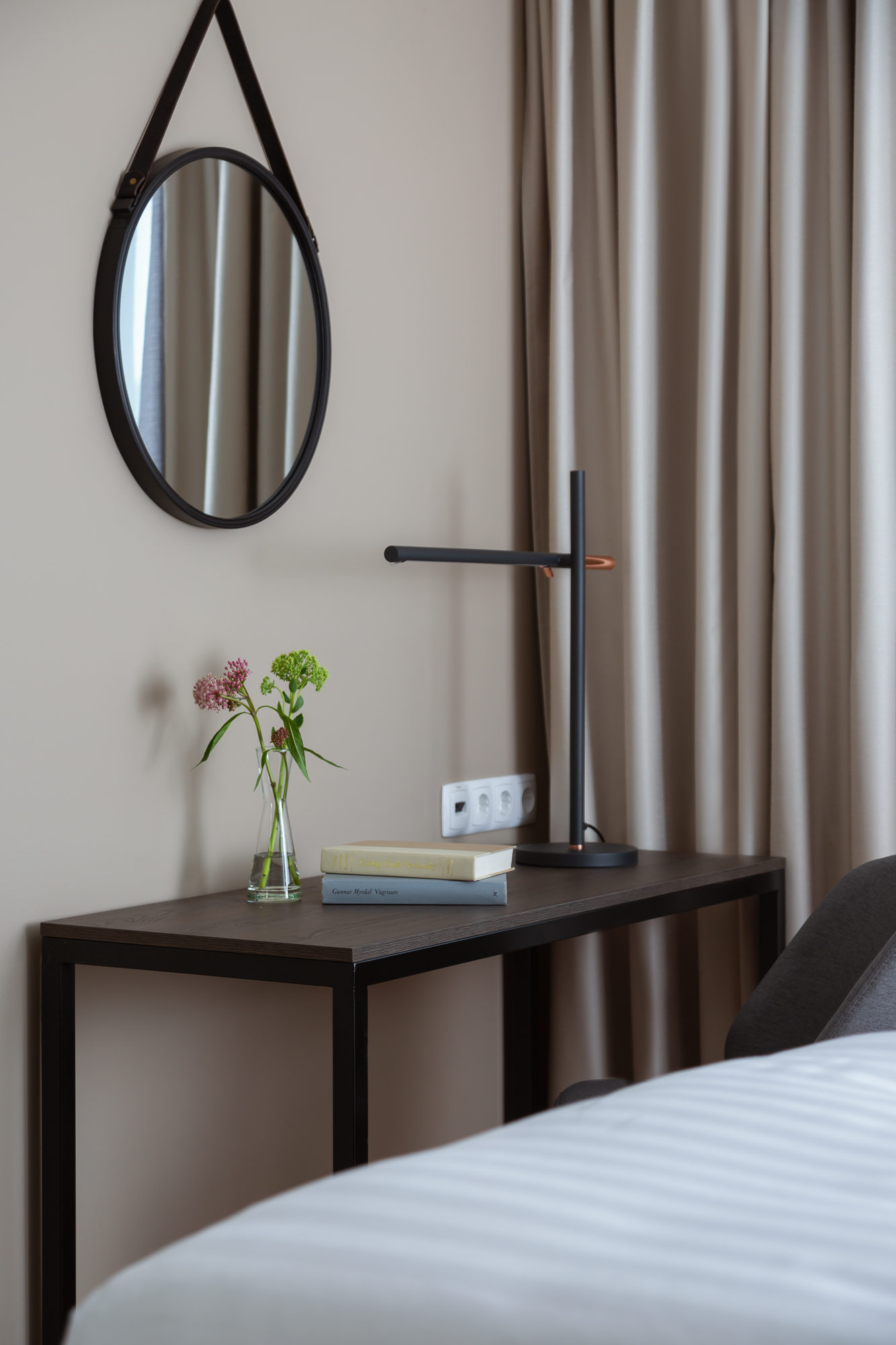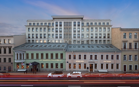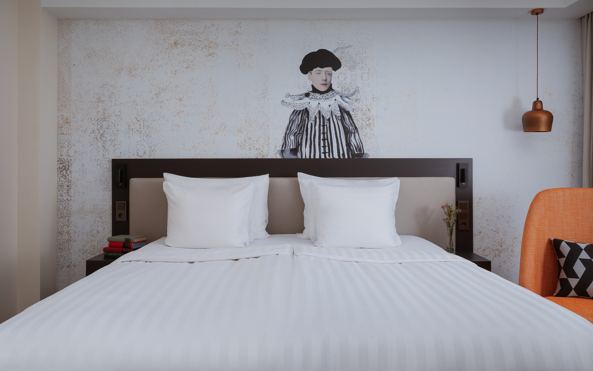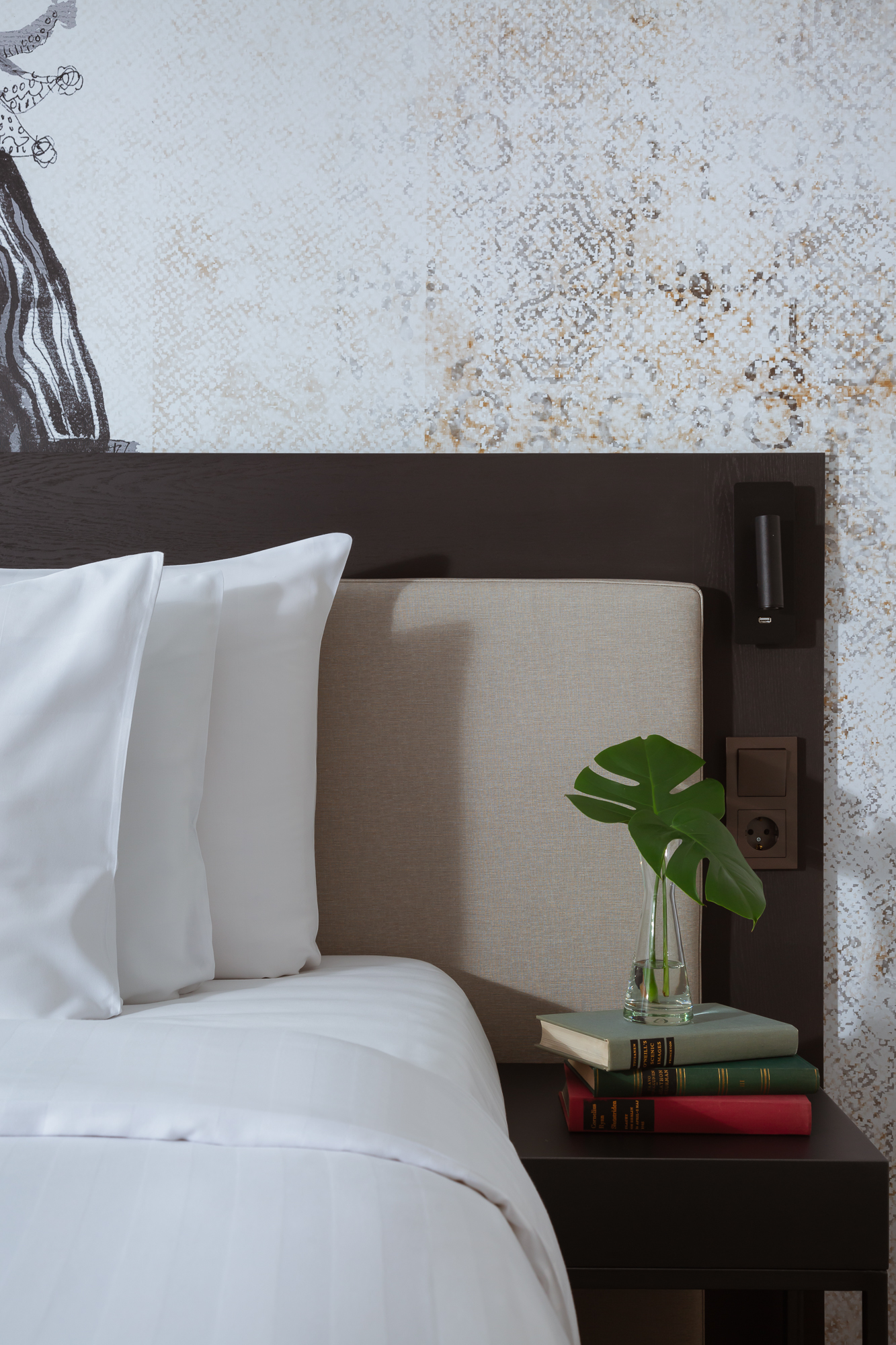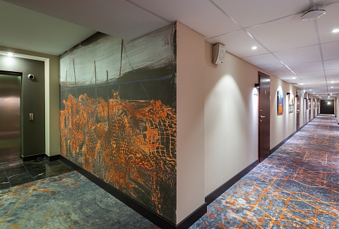 В шаговой доступности функционируют кафе, рестораны, супермаркет и магазины. Расстояние до аэропорта составляет 20 километров, до железнодорожного вокзала – 7 километров. Номерной фонд расположился в 7-этажном здании. Дизайнерские комнаты оснащены современной мебелью, телевизором, кондиционером, мини-холодильником, сейфом, гладильными принадлежностями. Санузел с ванной или душем, есть фен и косметические принадлежности. На 1 этаже отеля работает ресторан «Репин», а также паб «8 линия». При необходимости отдыхающим предоставляется транспорт. Личный транспорт можно оставлять на парковке.