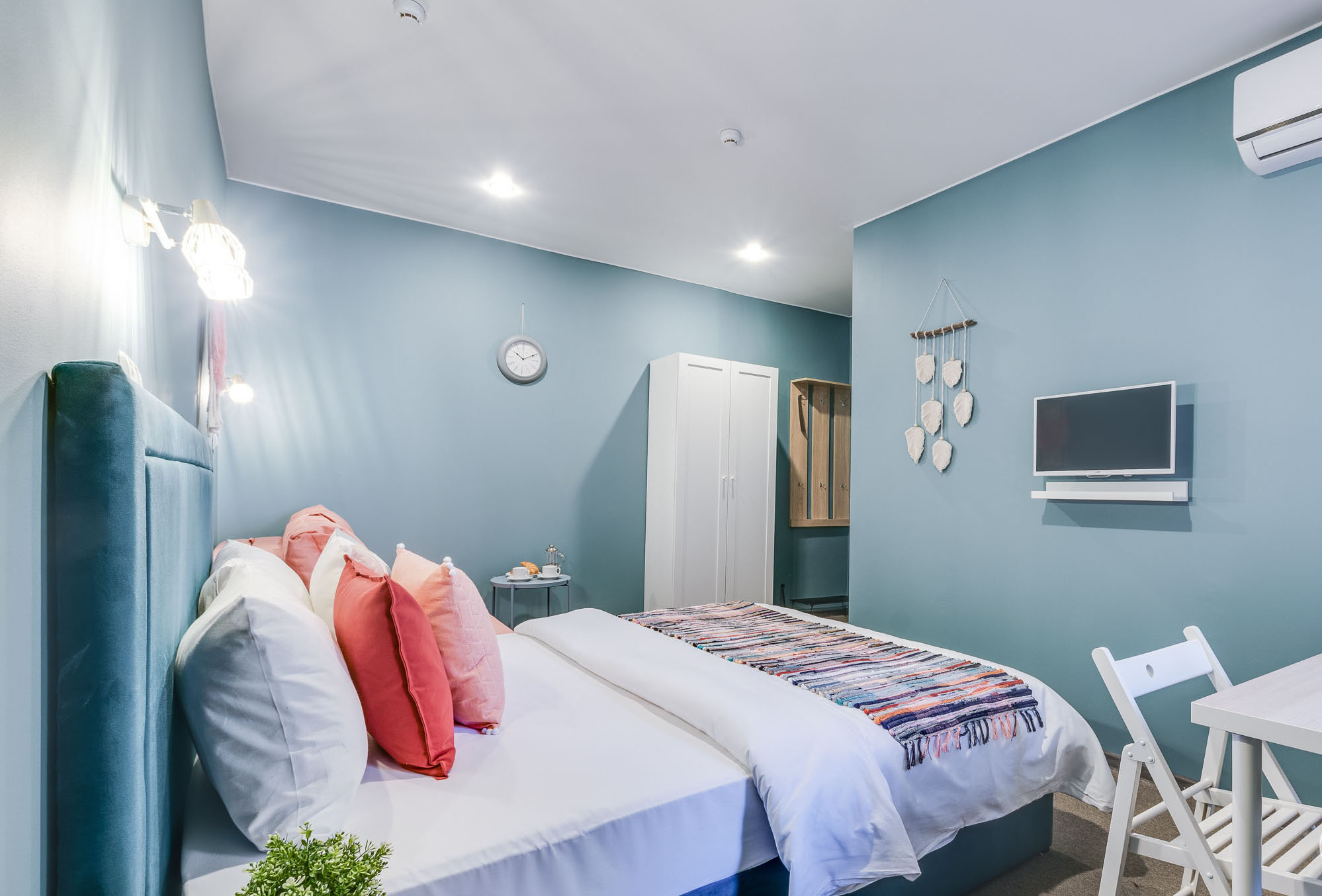 В номере: вешалка, зеркало, кровати односпальные /одна двуспальная кровать, прикроватная тумбочка, стол, стулья, шкаф, мини-холодильник, сейф, телевизор, чайный набор посуды, электрочайник