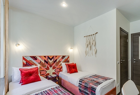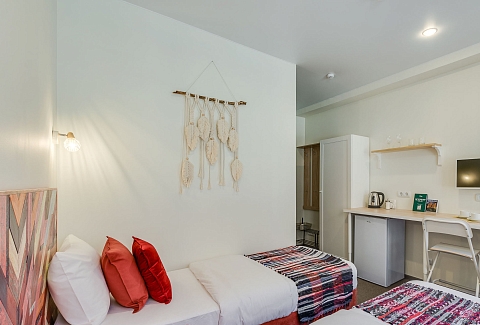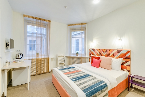 По дороге к ним встречаются атмосферные бары, уютные кафе и рестораны.Двухэтажное здание Sokroma Boho Hotel разместилось на Средней Подьяческой улице среди исторической застройки. Все интерьеры отеля выдержаны в стиле бохо, их отличают яркие радостные оттенки. Гости могут разместиться в светлых комфортабельных номерах разной категории комфорта, всего их 30. В каждом — индивидуальный санузел с душем, телевизор, фен, электрочайник. В просторных номерах улучшенной категории оборудована кухня, а в некоторых имеется небольшая гостиная.В отеле организовано несколько удобных общих зон: кухня, оснащенная всей необходимой бытовой техникой, гладильная комната и прачечная с самообслуживанием. Для юных гостей отеля предусмотрен игровой уголок с раскрасками и интересными играми, также малышам предоставляются кроватки-манежи.