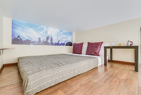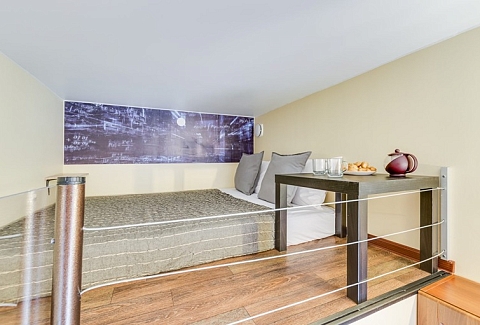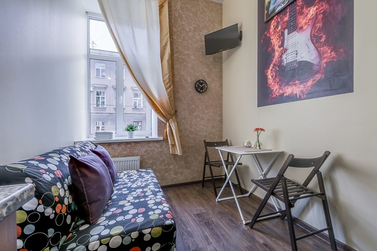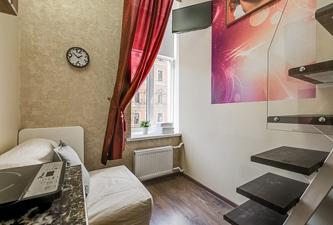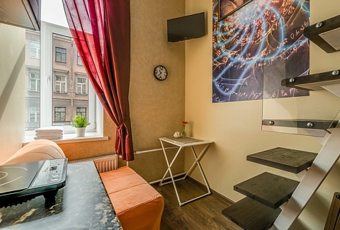 Оформление студий соответствует характеру каждого вдохновителя, а на стенах в каждой комнате красуются портреты гениев. При этом студии пропитаны домашним теплом и светом – такая обстановка лучше всего располагает к отдыху и расслаблению! «Гений» – это 9 двухуровневых студий, рассчитанные на комфортное проживание компании до 4 человек. Есть как большие студии для всей семьи, так и студии поменьше – для двоих. Первый уровень занимает санузел с душем, мини-кухня и гостиная зона. Спальня с большой двуспальной кроватью располагается отдельно на втором уровне – туда вас приведет аккуратная лесенка. Кухня, несмотря на свои небольшие размеры, оборудована всем необходимым для самостоятельного приготовления еды – таким образом, в поездке вам не нужно тратиться на рестораны и кафе, чтобы накормить всю семью. В каждой студии есть свой холодильник, индукционная плитка, чайник, а также набор посуды и столовых приборов, которые точно пригодятся во время приготовления обеда. В ванной комнате вы найдете фен, комплект свежих полотенец по числу гостей и туалетно-косметические принадлежности в дозаторах для удобства использования: шампунь, гель для душа и жидкое мыло для рук. В гостиной вы можете отдохнуть на удобном диване – в студиях побольше, или кресле – в студиях поменьше, за просмотром телевизора или чтением интересной книги. Здесь же есть стол для семейных посиделок и обеда. Смотрите любимые фильмы на ноутбуке и не отвлекайтесь от рабочих дел, если они приехали в Петербург вместе с вами – на всей территории апартов работает Wi-Fi. За пределами своей студии в общей зоне вы всегда и в любое время суток можете воспользоваться кулером, микроволновкой, стиральной машиной, сушилкой для белья, гладильной доской и утюгом – это особенно удобно для гостей, останавливающихся в апартах на длительное время. Апарты «Гений» сочетают в себе внутренние удобства, как дома, и удобное расположение в сердце Петербурга недалеко от главных достопримечательностей города.