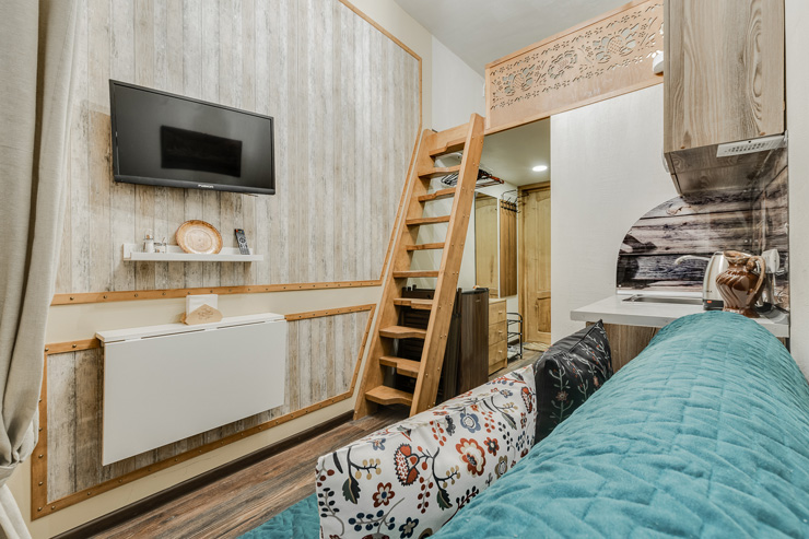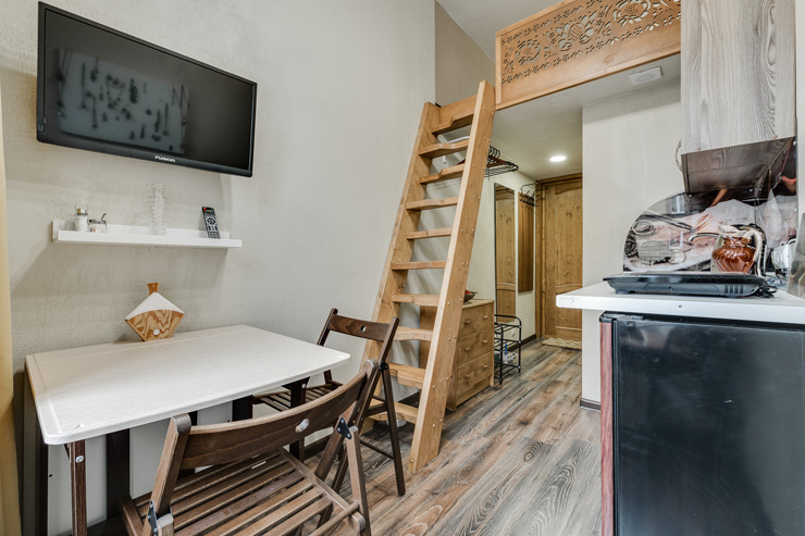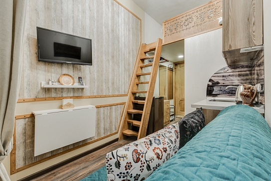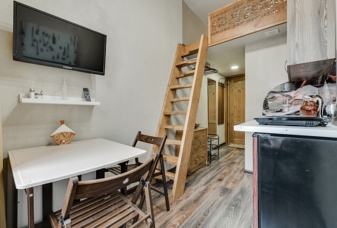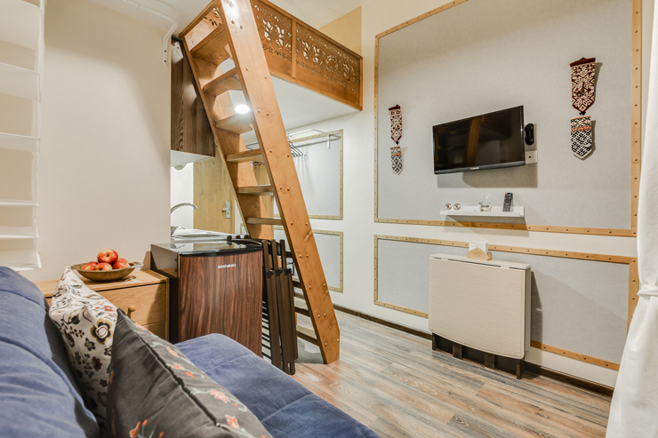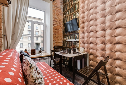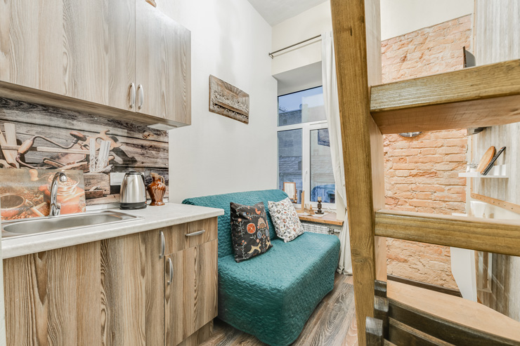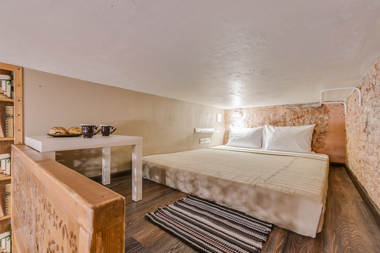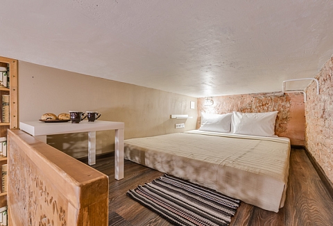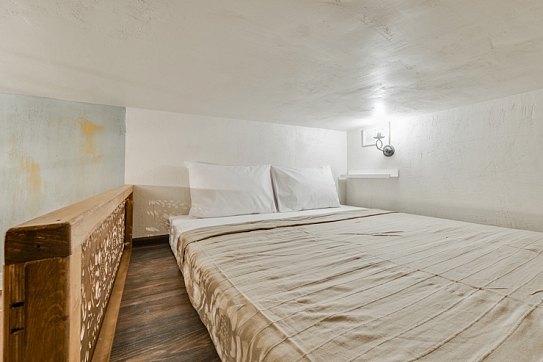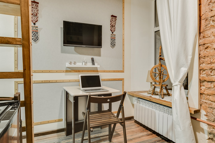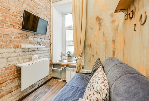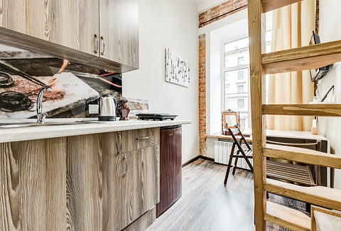 Интерьер студий выполнен в стиле лофт, и в каждом есть уникальные элементы декора: старинный ткацкий станок, прялка и даже швейная машинка, которой больше 80 лет!Необычная глиняная посуда, вручную расписные изделия и другие занятные мелочи перенесут вас в эпоху древних ремесел и дадут возможность прочувствовать дух того времени!«Город Мастеров» – это 6 невероятно уютных двухуровневых студий, предусмотренные для проживания 2-4 гостей. На первом уровне располагается санузел с душем, небольшая кухонная зона и гостиная. На втором уровне – отдельная спальня с большой двуспальной кроватью.Мини-кухня оборудована всем необходимым для создания кулинарных шедевров: из бытовой техники здесь есть холодильник, индукционная плитка, чайник, также мы не забыли про посуду и столовые приборы. Если же вам не хочется беспокоиться по поводу готовки, вы всегда можете заказать еду у наших партнеров или посетить кафе, расположенное в этом же доме.Ванная комната оснащена феном и нужными в путешествии вещами: комплектами полотенец и гигиеническими средствами (шампунь, гель для душа и мыло для рук).В гостиной вы можете собраться всей семьей за столом или посмотреть телевизор, расположившись на удобном диванчике. Во всех студиях диван раскладывается, превращаясь в дополнительное спальное место для одного или двоих – в зависимости от размера студии. Это особенно удобно для семей с детьми или компании друзей!Не отказывайте себе в повседневных привычках, любимых фильмах и рабочих планах – на всей территории апартов работает Wi-Fi.Общая зона, предусмотренная для пользования всех гостей, включает в себя стиральную машину, микроволновку, сушилку для белья, утюг, гладильную доску и кулер с водой.Апарты «Город Мастеров» примечательны не только внутренними удобствами и необычным интерьером, но и расположением возле Московского вокзала вблизи от многих интересных локаций города на Неве.