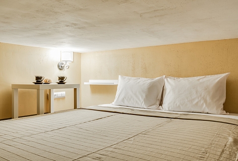 В номере: вешалка, диван, зеркало, матрас, стол, стулья, мини-холодильник, набор посуды, плита электрическая, телевизор, электрочайник