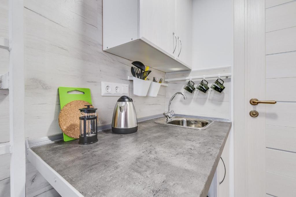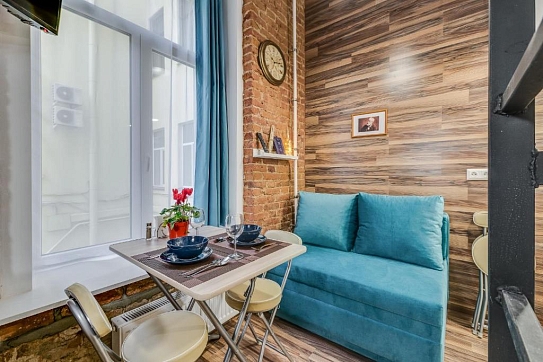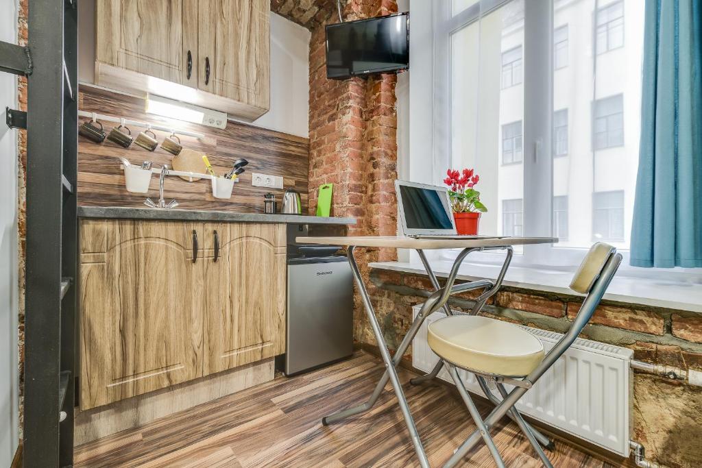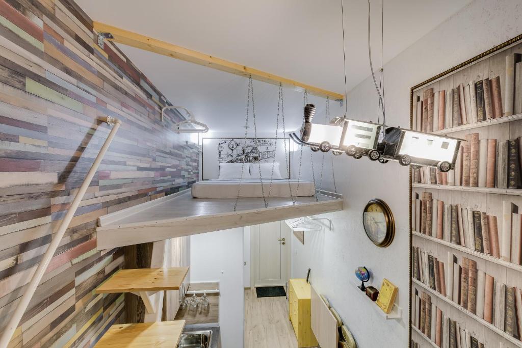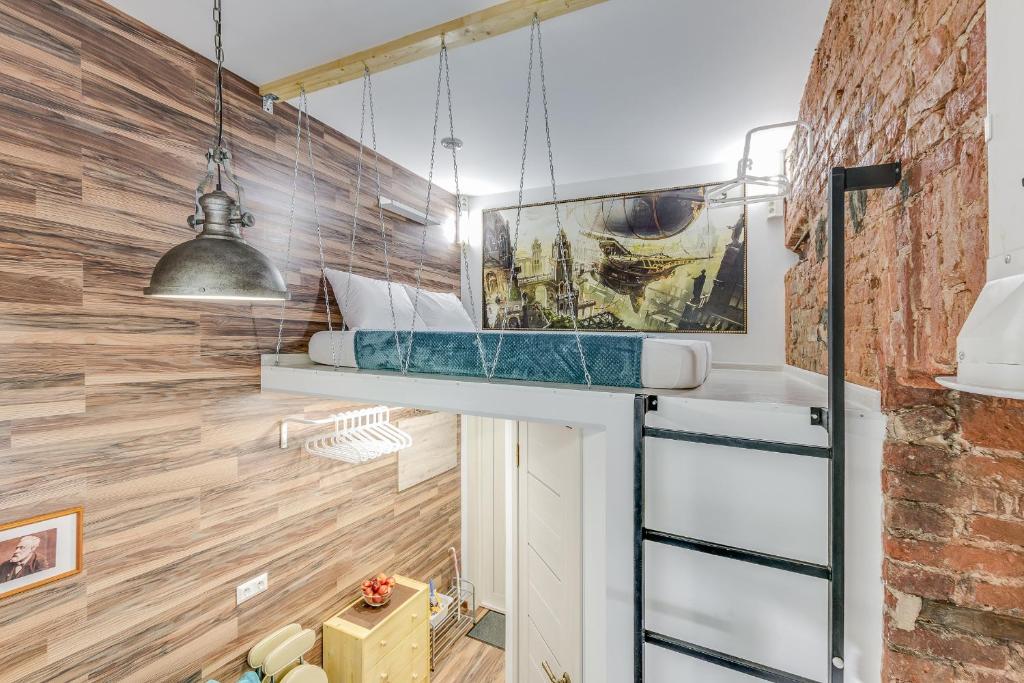 Гостей ожидают 10 современных двухуровневых номеров, оформленных в популярном сегодня стиле лофт с элементами стим-панка. На первом ярусе есть мини-кухня, оборудованная посудой и техникой, санузел с душем и косметическими принадлежностями для гостей и уютный гостиный уголок с диванчиком и столиком, на втором ярусе гостей ожидает удобная двухспальная кровать. Окна номеров выходят в тихий питерский дворик, поэтому отдыхающие могут не волноваться — шум от оживленных улиц в комнаты проникать не будет.