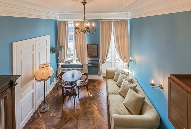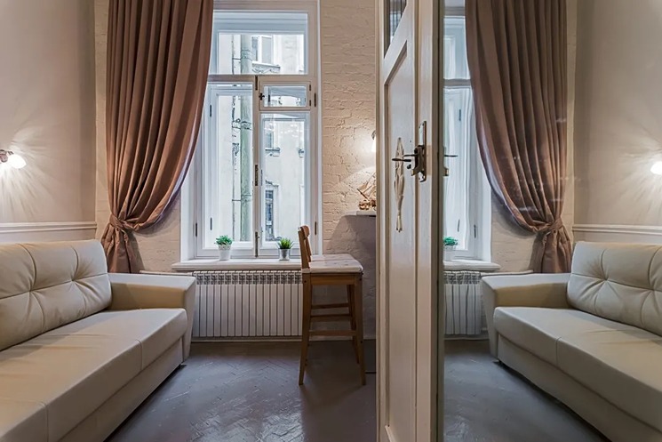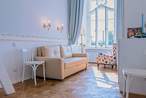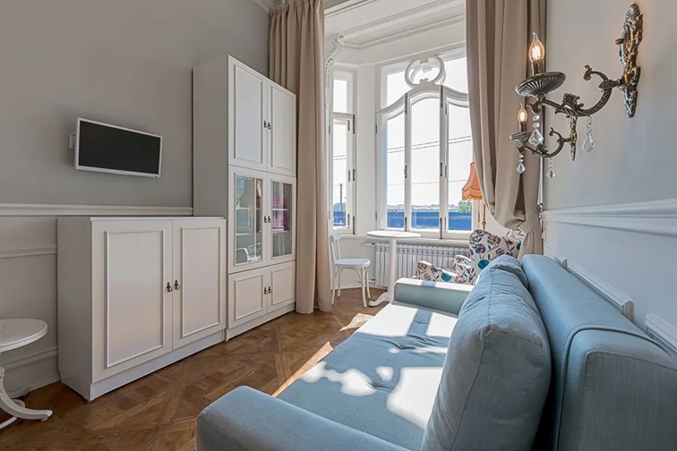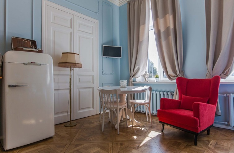 Если вы приезжаете с детьми – готовьтесь к тому, что они будут в безудержном восторге от такого «домика на дереве»! Каждая студия – полноценная отдельная квартирка со своим настроением. Часть студий оформлена в винтажном стиле – старинные торшеры и виниловый проигрыватель перенесут вас в Петербург середины 20 века. Кроме того, есть студии с элементами лофта и эклектики – для тех, кто любит атмосферу посовременнее. В кухонной зоне есть холодильник, чайник, электроплита, посуда и столовые приборы. В душевой – фен, стиральная машина и средства для стирки и чистки одежды. Про гладильную доску и утюг не беспокойтесь – ими оснащена каждая студия. Диван в гостиной раскладывается и превращается в дополнительное спальное место, если вы приезжаете большой компанией. Также в гостиной можно поработать с ноутбуком за столиком или отдохнуть за просмотром телевизора. После долгой прогулки по Петербургу вы сможете сразу согреться – гостям бесплатно предоставляется чай, кофе, сахар, а также соль и специи для того, чтобы в момент приготовления вкусного ужина хозяюшке не пришлось бежать к соседям. А если прогулка была еще и дождливой – в каждой студии есть сушилка для обуви. При заселении гости получают свежее белье, комплект полотенец и туалетно-косметические принадлежности. Всем гостям предоставляется доступ к Wi-Fi. Номера в «Купеческом доме» идеально подойдут для семей или компании друзей, которые приехали погостить в Петербург на недельку-другую, так как многие достопримечательности города располагаются в шаговой доступности от апартов.