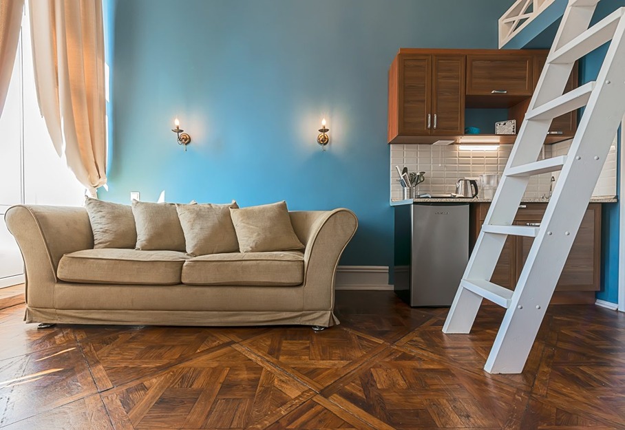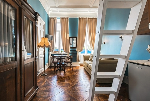 Sokroma «Купеческий дом» располагается в Петроградском районе Санкт-Петербурга в 5 минутах ходьбы от станции метро Спортивная. Это 6 двухуровневых студий: на первом этаже располагается гостиная, мини-кухня и санузел с душем. А поднявшись на второй этаж по лесенке, вы попадете в небольшую, но уютную спальню.