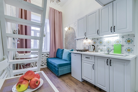 Самолетом до аэропорта Пулково (г. Санкт-Петербург), далее на автобусе №39 до остановки «ул. Авиационная», далее на автобусе №50 до остановки «Мариинский театр», затем пересадка на автобус №6 до остановки «Средний проспект В.О.», далее пройти пешком 320 м до апарт-отеля.