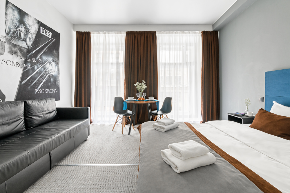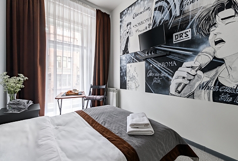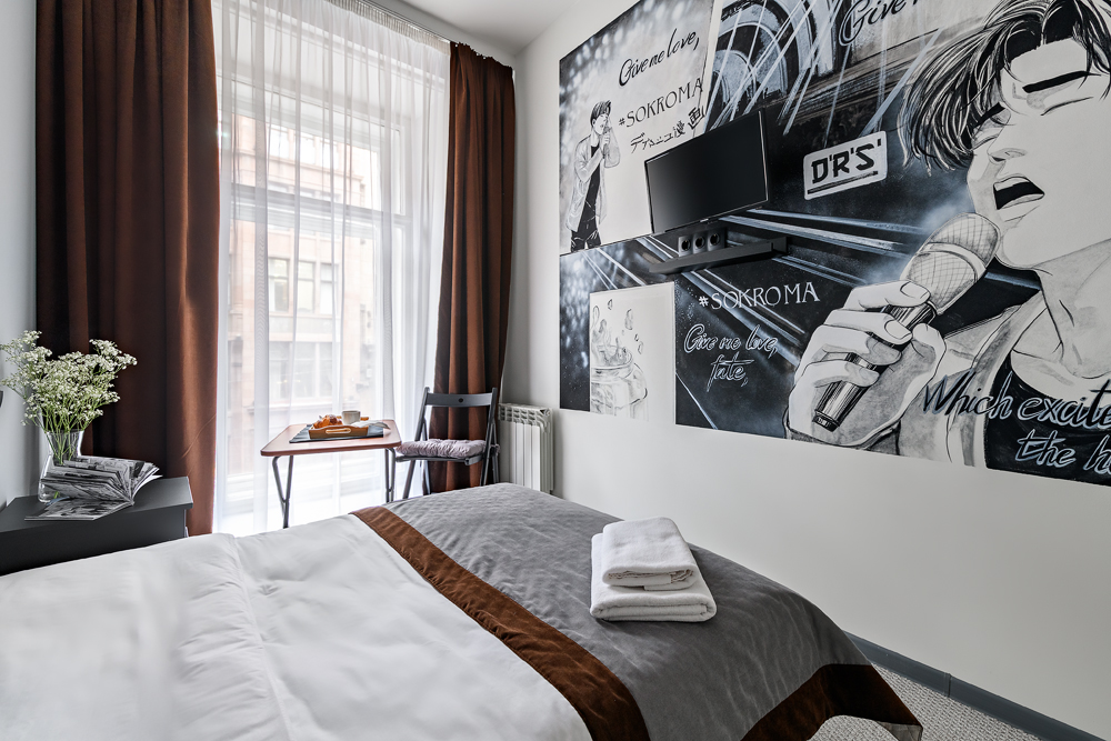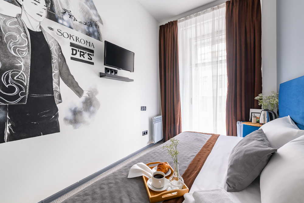 Уникальность Sokroma WOW в том, что отель посвящен манге D’R’S. Все интерьеры украшены иллюстрациями с главными героями из цикла Димаш Манга. Всего в отеле 10 номеров, среди них есть как стандартные номера, так и апартаменты с кухней. В каждой комнате имеется все необходимое для комфортного отдыха: собственный санузел, телевизор, фен и другая бытовая техника. Из окон открывается вид на Невский проспект или на атмосферный питерский дворик.Для гостей в отеле оборудована уютная столовая и общая лаундж-зона, где можно отдохнуть, пообщаться или поработать за ноутбуком.