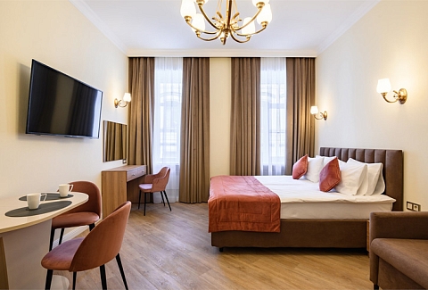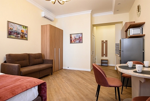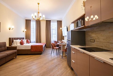 Сеть апартаментов «Solo Апарт ВИА» находится в самом сердце культурной столицы недалеко от Юсуповского дворца. В шаговой доступности расположены все знаковые достопримечательности: многочисленные музеи, соборы, театры, дворцы, мосты.Апартаменты размещены в историческом здании — бывшем доходном доме XIX века. Номерной фонд включает 3 просторные дизайнерские студии, оформленные в классическом стиле и сдержанной цветовой гамме.