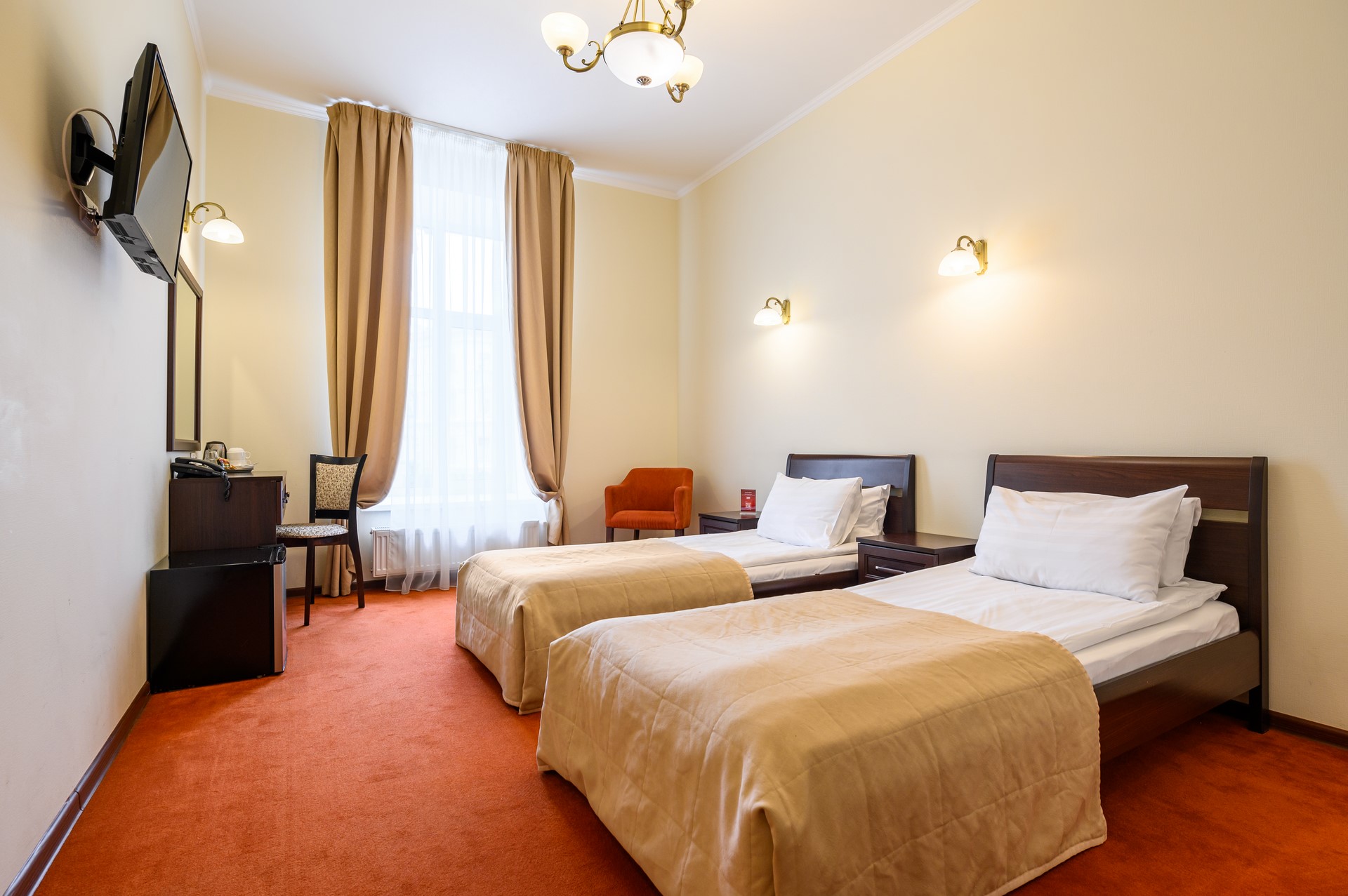 Самолетом до аэропорта Пулково (г. Санкт-Петербург), далее на рейсовом автобусе №39 до остановки «ул. Авиационная», далее на метро до станции «Сенная площадь», далее пройти пешком 1,44 км до отеля.