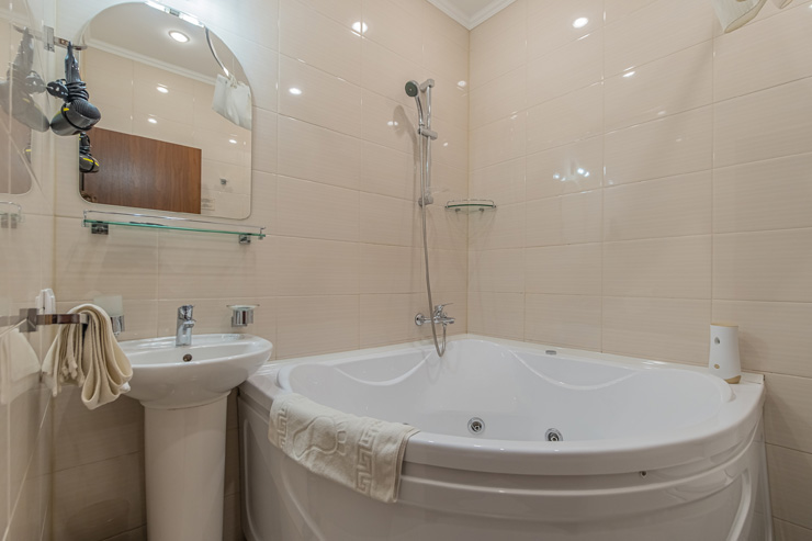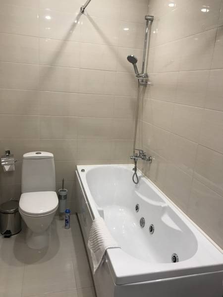 Санузел: с джакузи, тапочки, туалетные принадлежности, фен, халат