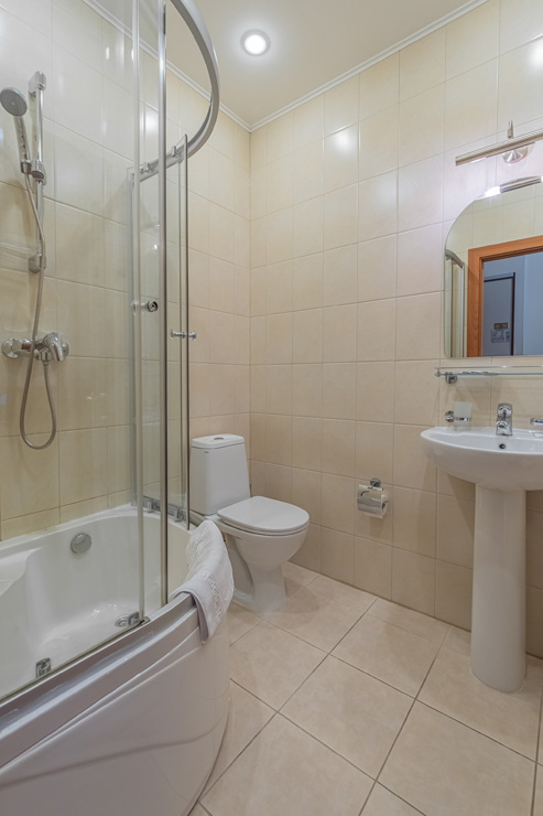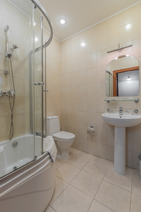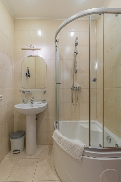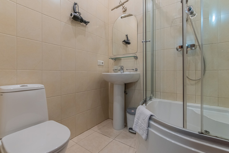 Санузел: с душем, туалетные принадлежности, фен