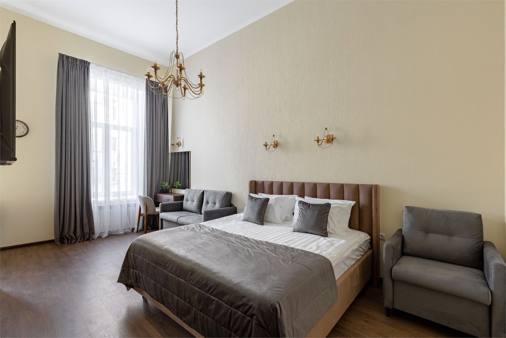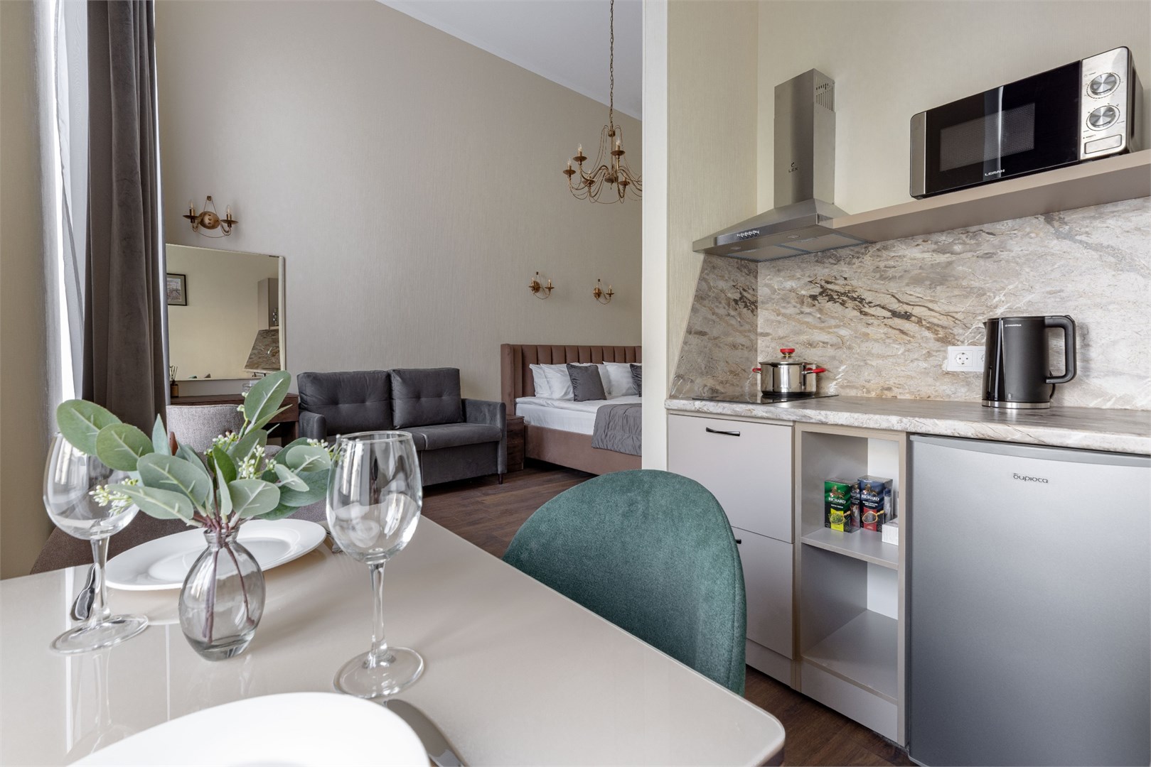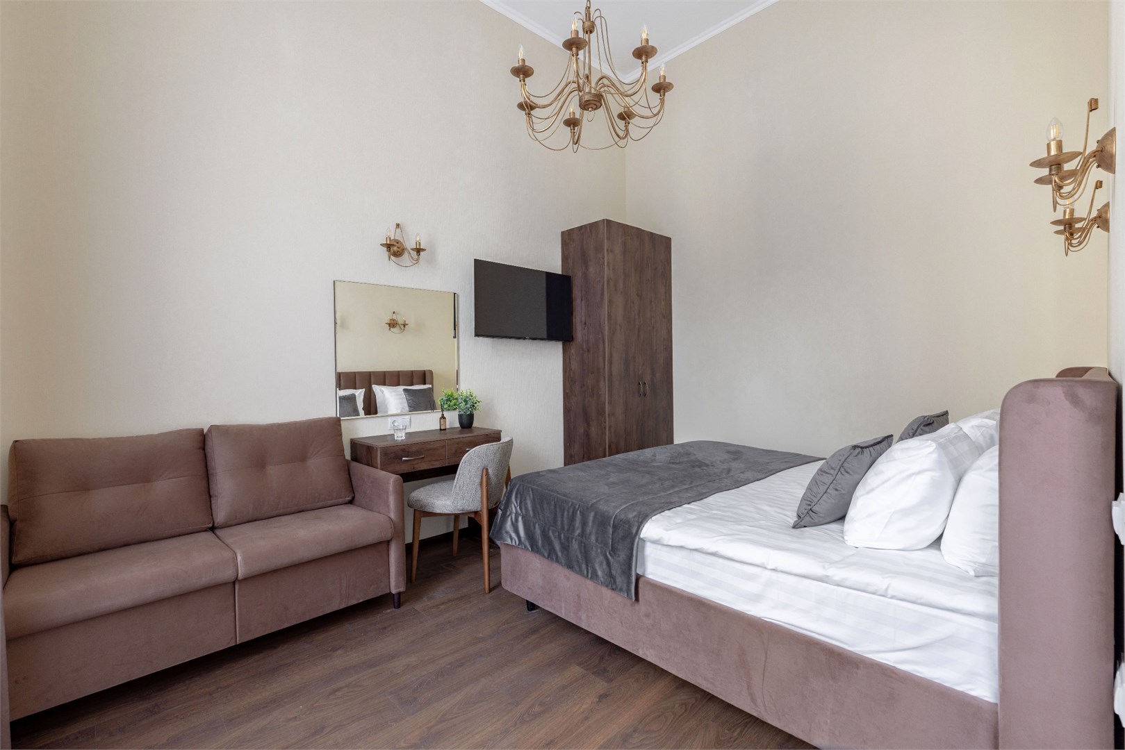 Сеть апартаментов «Solo WAY Апарт» расположена в самом сердце культурной столицы. В непосредственной близости находятся все знаковые локации: набережная реки Фонтанки, Казанский собор, Михайловский замок, многочисленные музеи, театры и дворцы.Уютные апартаменты с классическими интерьерами и потолками более 4 метров располагаются в роскошном особняке с историей — бывшем доходном доме Лихачевых. В здании работают несколько баров и кофейня.Номерной фонд состоит из двух апартаментов, стильно оформленных в сдержанной цветовой гамме.